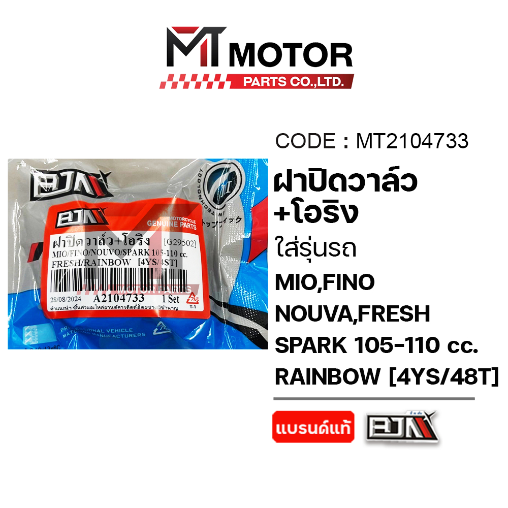 (MT2104733) ฝาปิดวาล์ว+โอริง YAMAHA MIO, FINO, NOUVO, FRESH, SPARK, RAINBOW [4YS/48T] [MT] ฝาวาล์ว