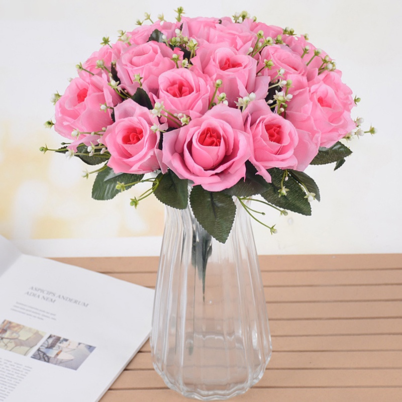 【YKD】ช่อดอกกุหลาบประดิษฐ์ ผ้าไหม 18 ดอก สําหรับตกแต่งบ้าน งานแต่งงาน ปาร์ตี้