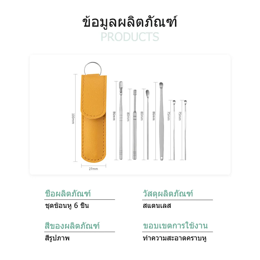 ชื่อสินค้า: ที่ตักหูตั้ง 6 ชิ้น (พร้อมกล่อง)