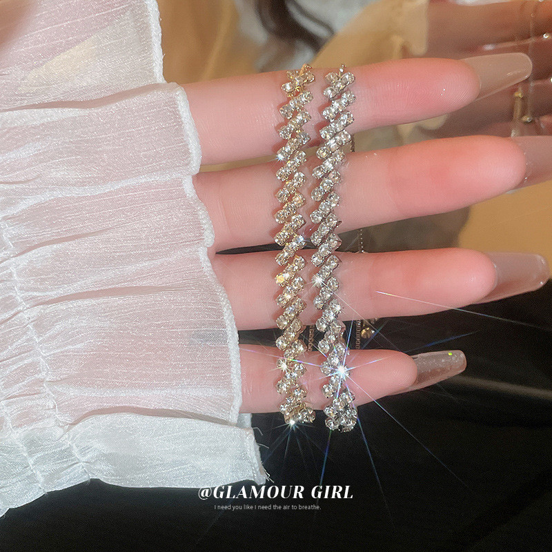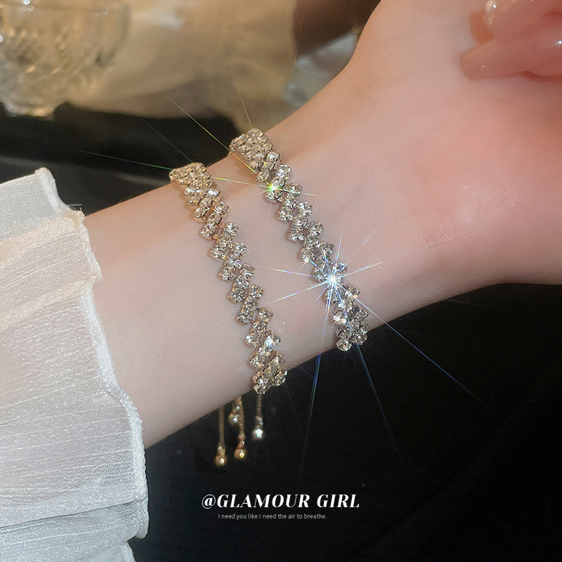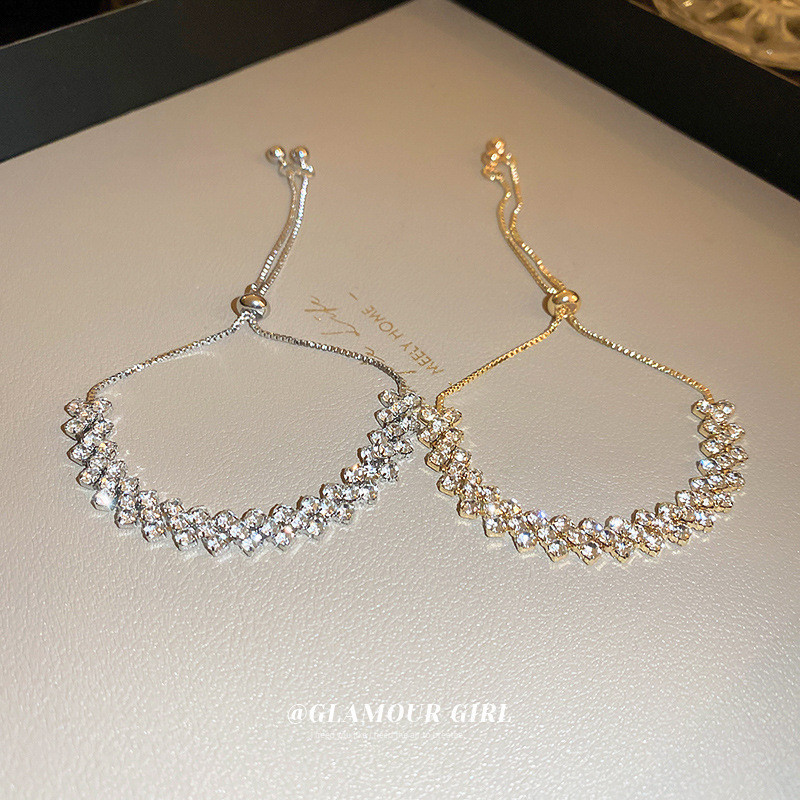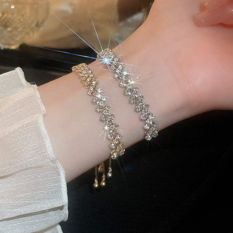 สร้อยข้อมือ แบบดึงออก ทรงเรขาคณิต ประดับเพชร เข้ากับทุกการแต่งกาย แฟชั่นสําหรับผู้หญิง