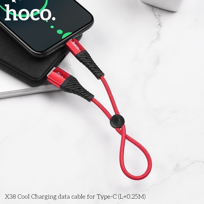 Hoco X38 สายชาร์จสั้น 25 ซม. สำหรับพกพา สายกันหัก มีทุกหัว สำหรับ Type-C 3a / iOS 2.4a / Micro USB 2.4a สายชาร์จ hc1