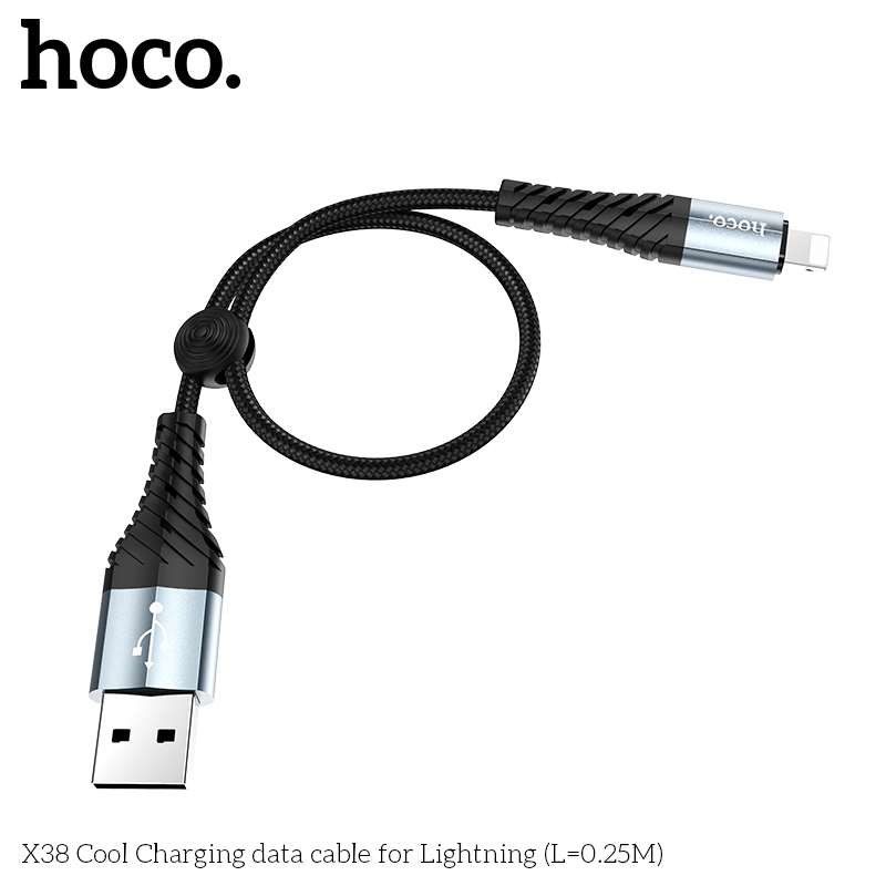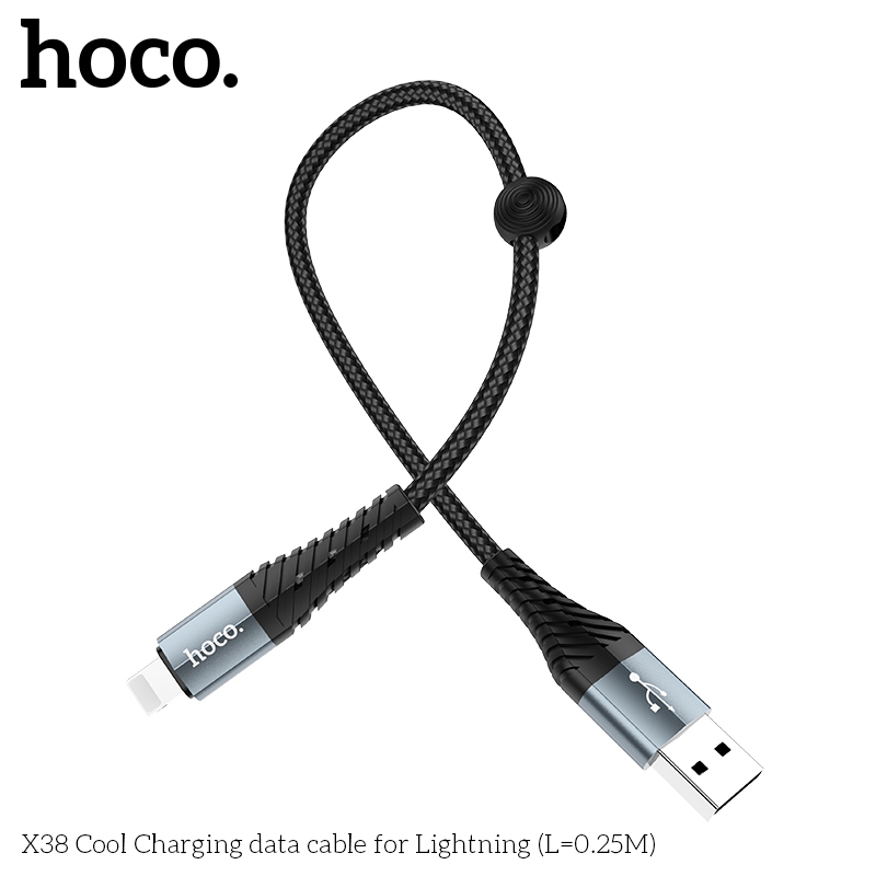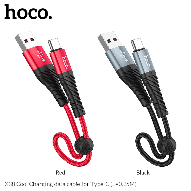 Hoco X38 สายชาร์จสั้น 25 ซม. สำหรับพกพา สายกันหัก มีทุกหัว สำหรับ Type-C 3a / iOS 2.4a / Micro USB 2.4a สายชาร์จ