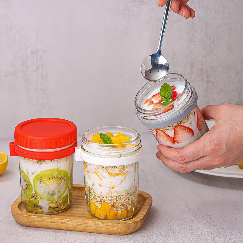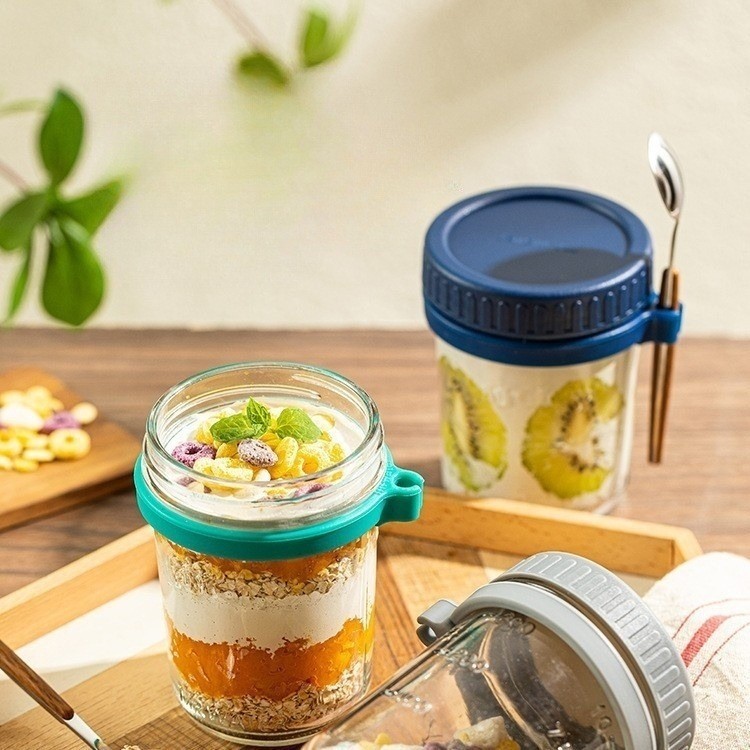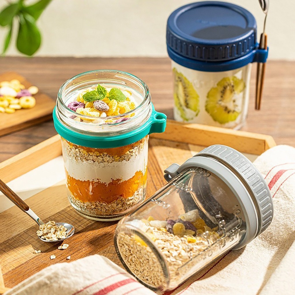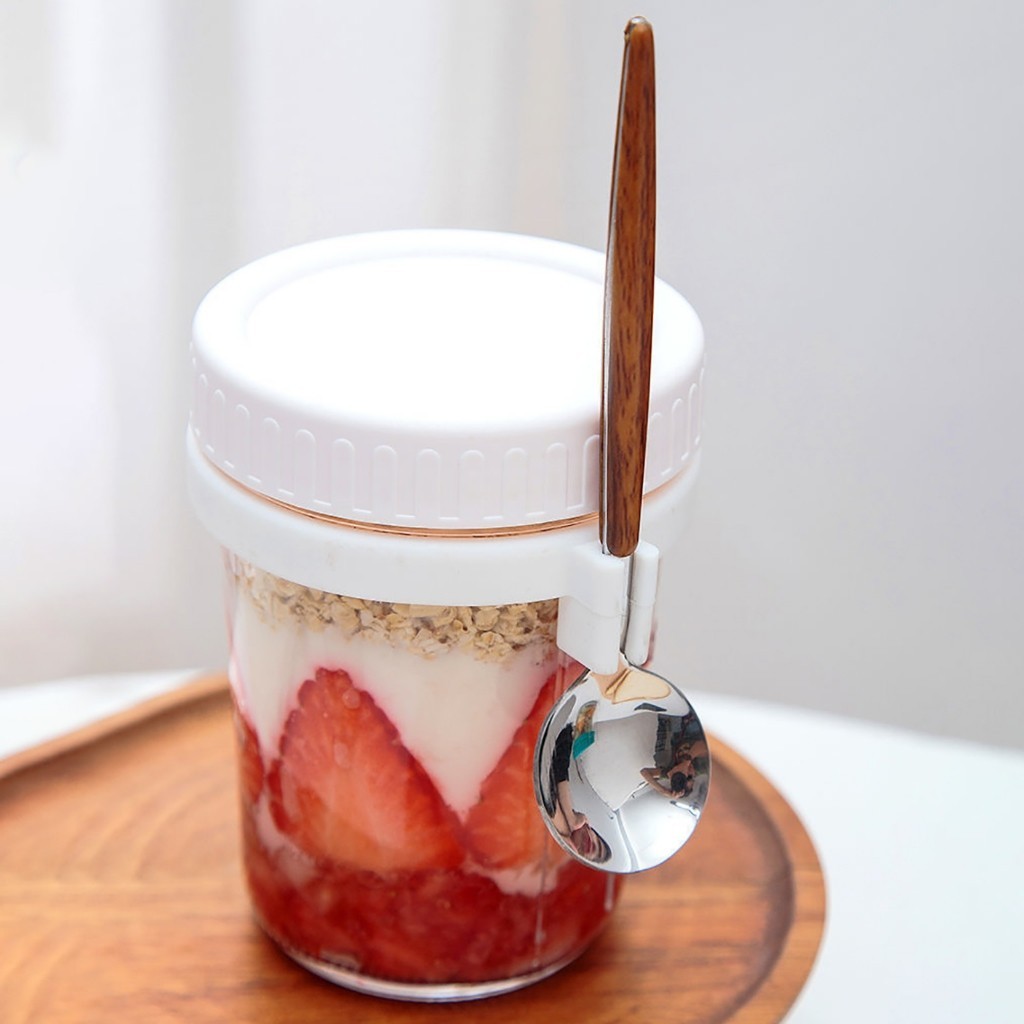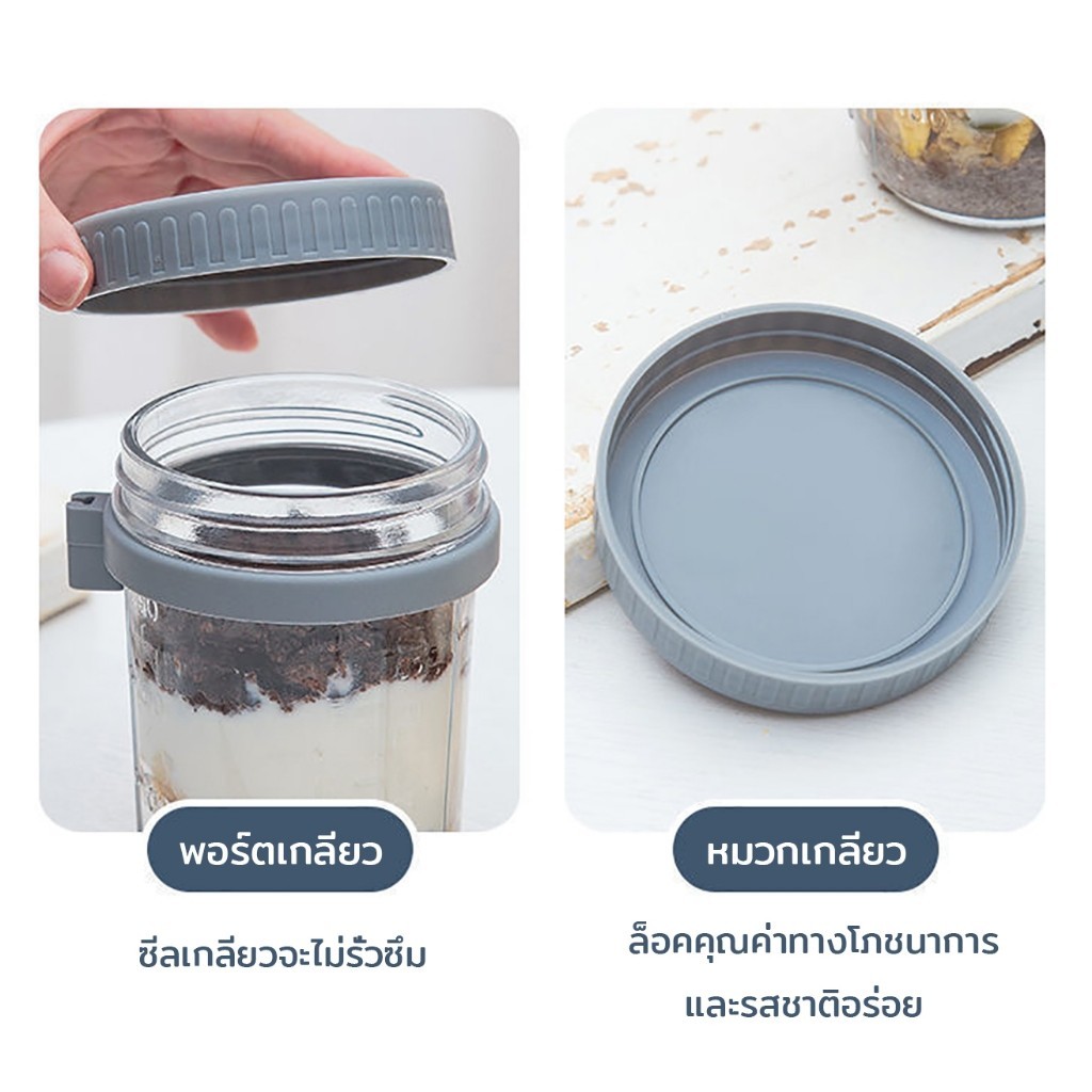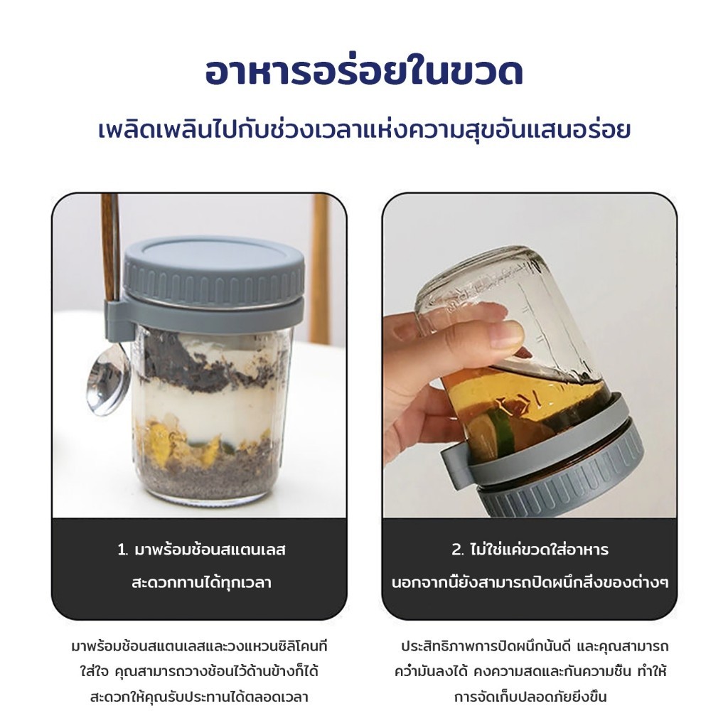 ถ้วยข้าวโอ๊ต ความจุ 350 มล.พร้อมฝาปิด+ช้อน แก้วปิดผนึกแบบพกพา #AD-0007