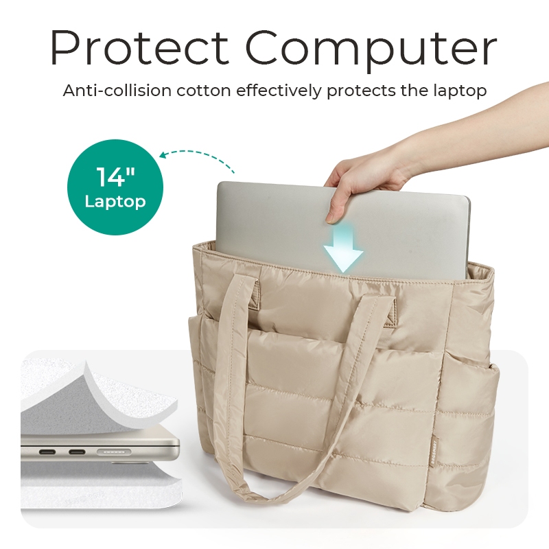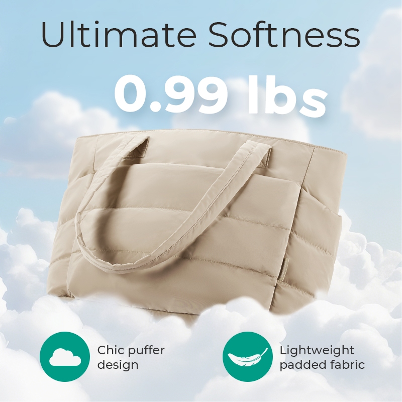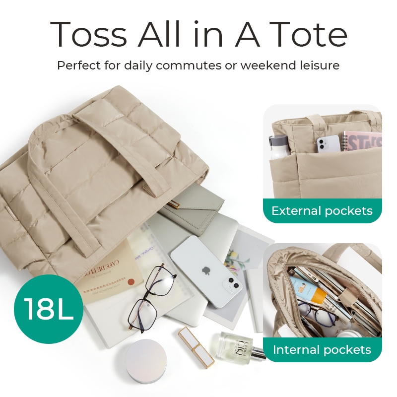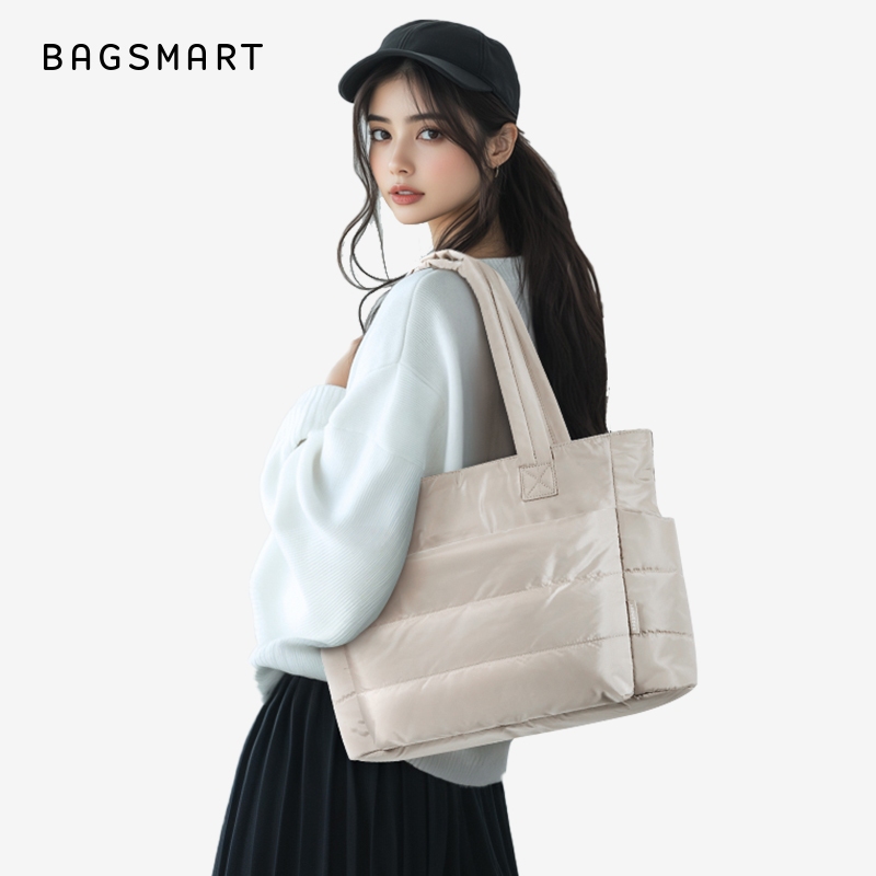 BAGSMART 14 นิ้ว Puffy Tote Bag สําหรับผู้หญิงน้ําหนักเบากระเป๋าสะพายไหล่หลายช่อง