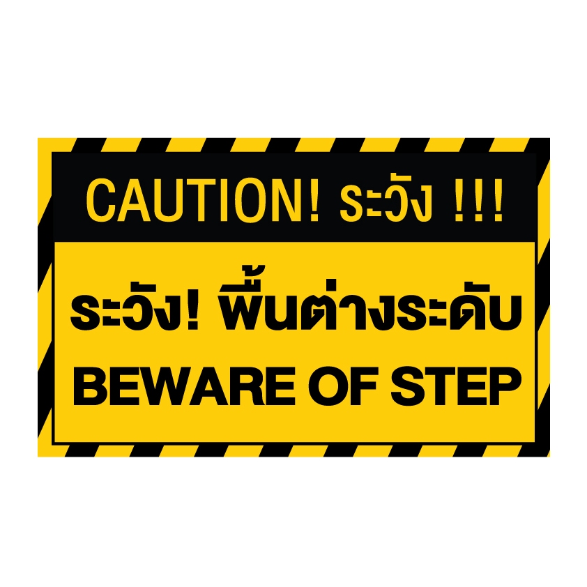 สติกเกอร์ สติ้กเกอร์กันน้้ำ ติดประตู,ผนัง,กำแพง (ป้ายระวังพื้นต่างระดับ) ได้รับ 1 ดวง [รหัส I-043]
