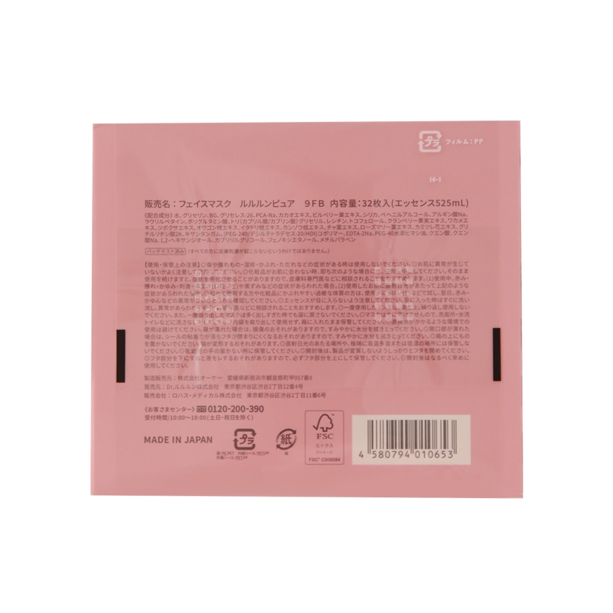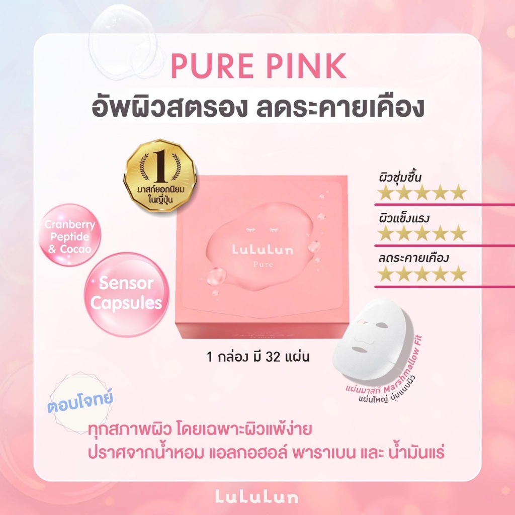 มาสก์หน้า ลูลูลูน เพียว 9 เอฟบี จากประเทศญี่ปุ่น ลูลูลูน เพียว สูตรที่ขายดีที่สุดของลูลูลูน ปรับสูตรใหม่ เพิ่มสารบำรุงผิว