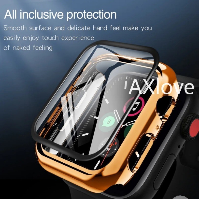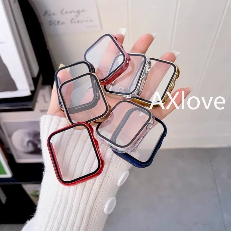 กระจก + ฝาครอบสำหรับ Apple watch case Ultra 2 9 8 7 6 SE 5 4 3 iWatch อุปกรณ์เสริมป้องกันหน้าจอ Apple watch series 45 มม. 41 มม. 44 มม. 40 มม. 42 มม. 38 มม.