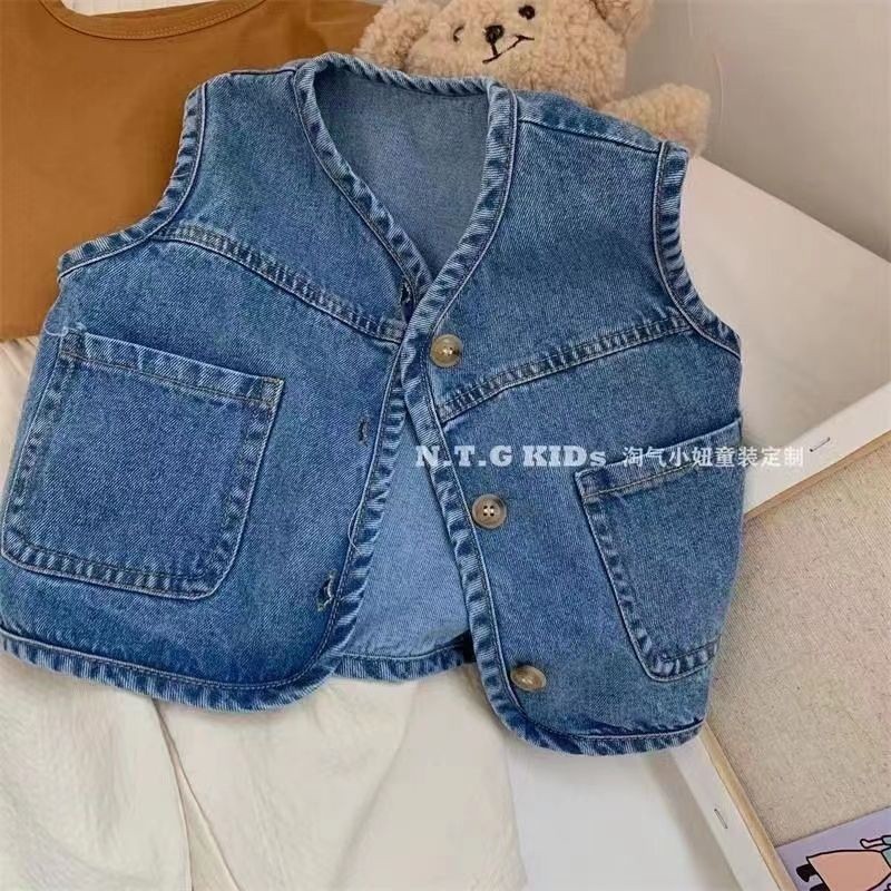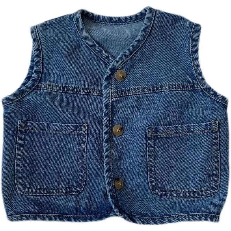 ใหม่ เสื้อแจ็กเก็ตยีน แขนกุด มีสไตล์ สําหรับเด็กผู้ชาย 2023