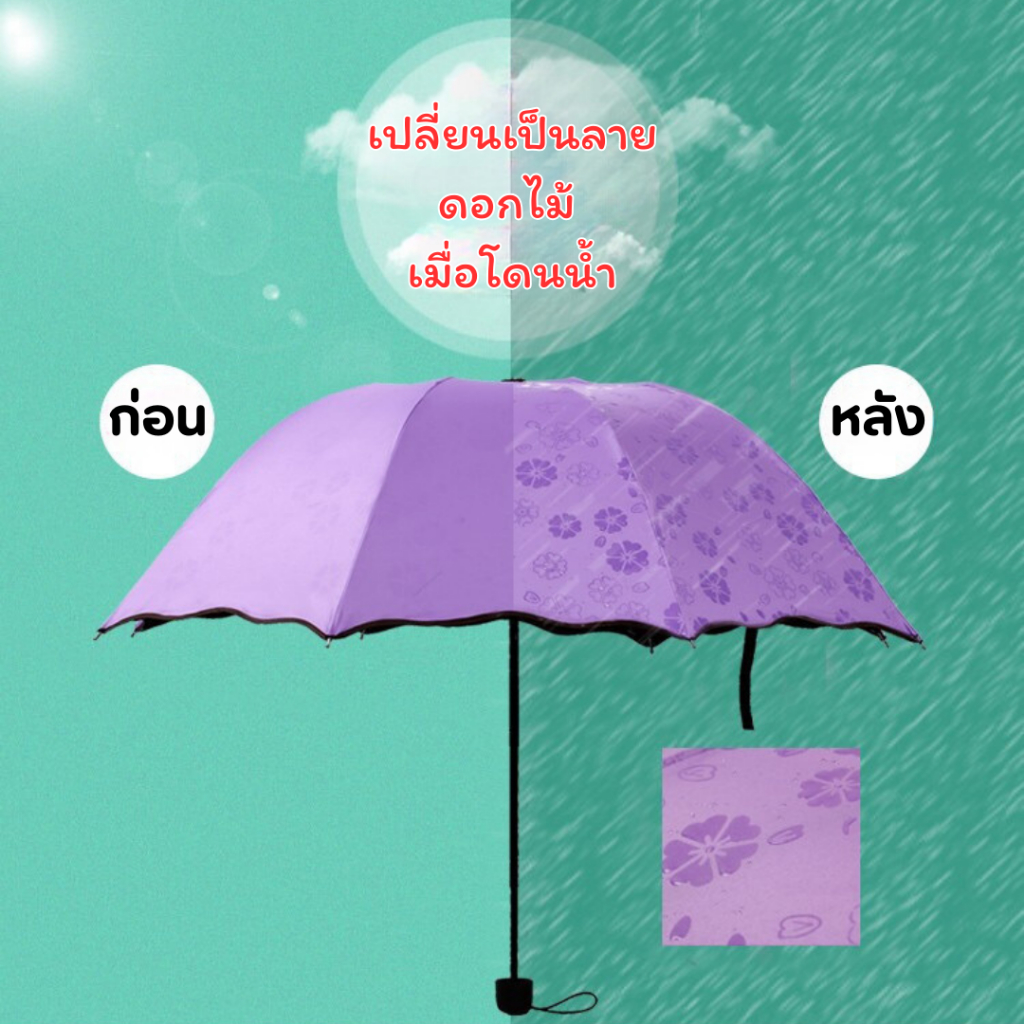 ร่มกันฝน โดนน้ำเปลี่ยนลาย ร่มกันแดด รุ่นผ้า2ชั้น กันยูวี UV พับได้ Umbrella รหัส 499