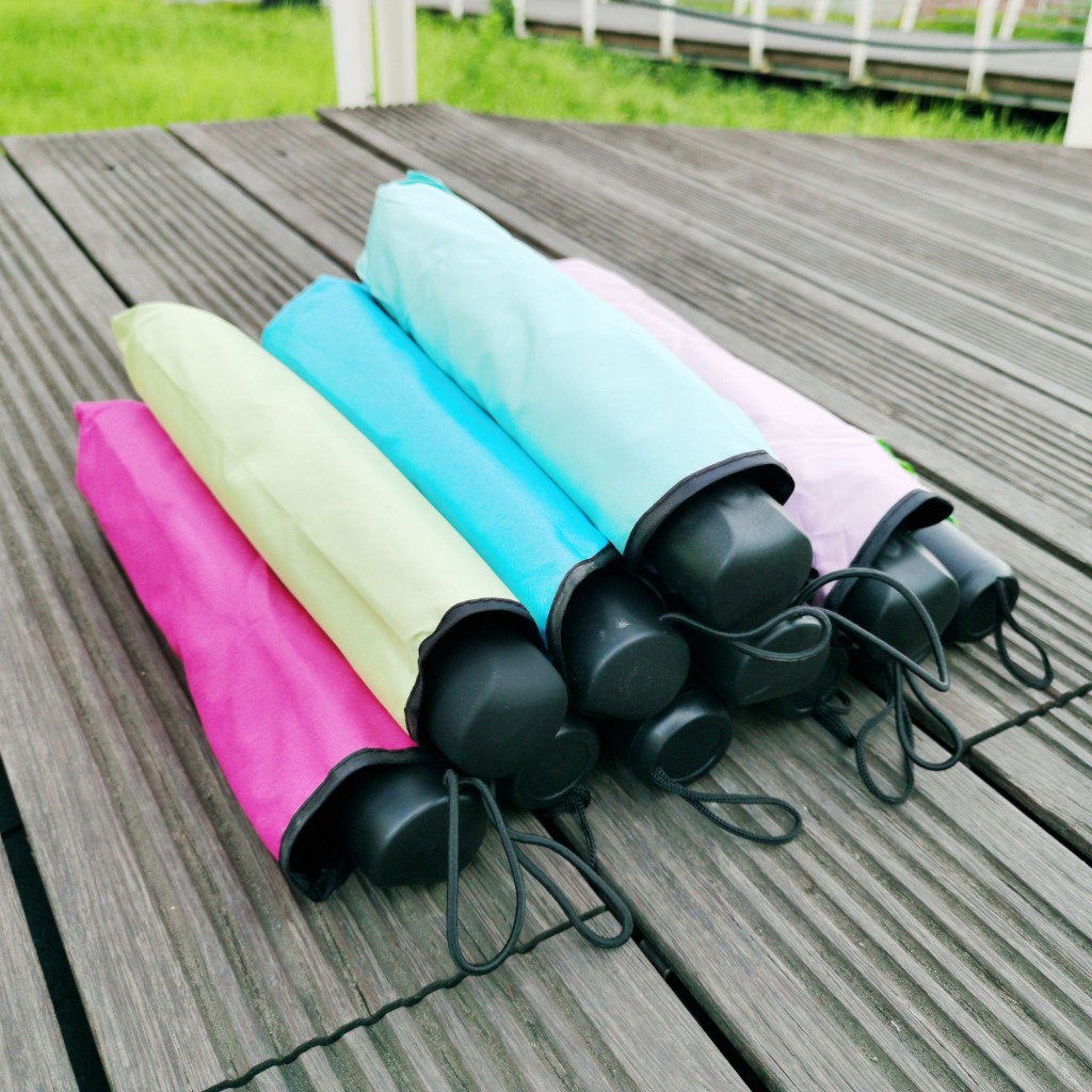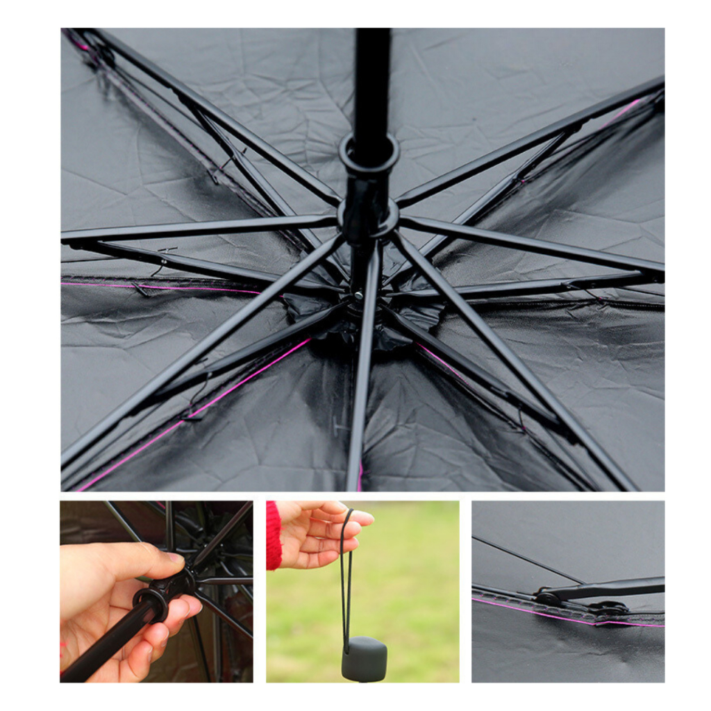- ร่มทำจากผ้าไนล่อน ด้าม อลูมิเนียม สไลด์ได้พับ 3 ตอน