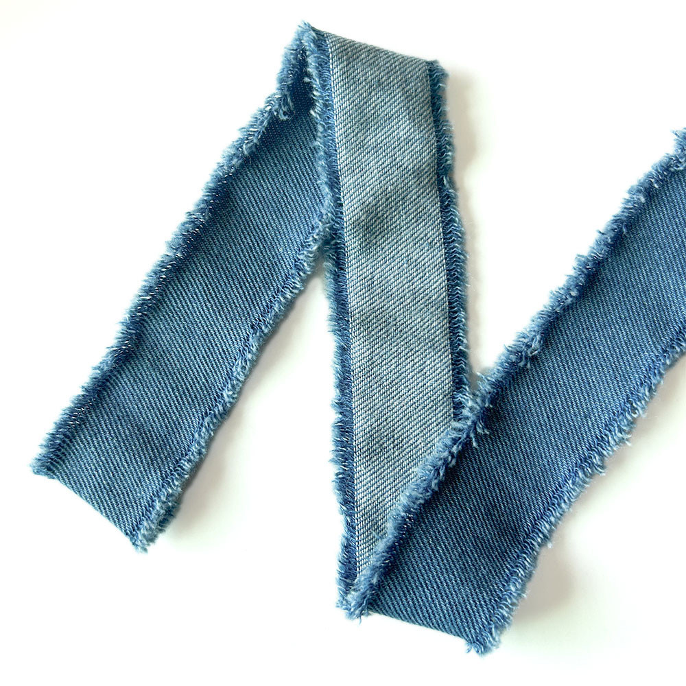 ผ้ายีนส์ริบบิ้นกางเกงยีนส์ผ้าแฮนด์เมดสําหรับ ทําเอง เย็บกิ๊บโบว์เสื้อผ้าสีฟ้าคาวบอยตกแต่ง