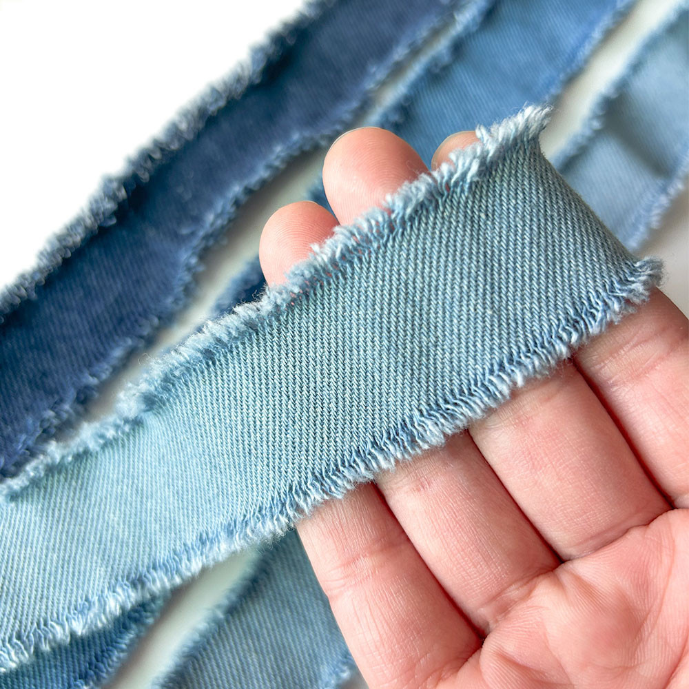 ผ้ายีนส์สีน้ำเงินโพลีเอสเตอร์ริบบิ้นพร้อมแกนม้วนแฮนด์เมด Fringe ผ้าหลุดลุ่ยสำหรับคำเชิญงานแต่งงานช่อเจ้าสาวห่อของขวัญ