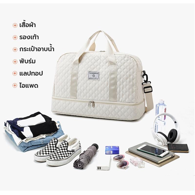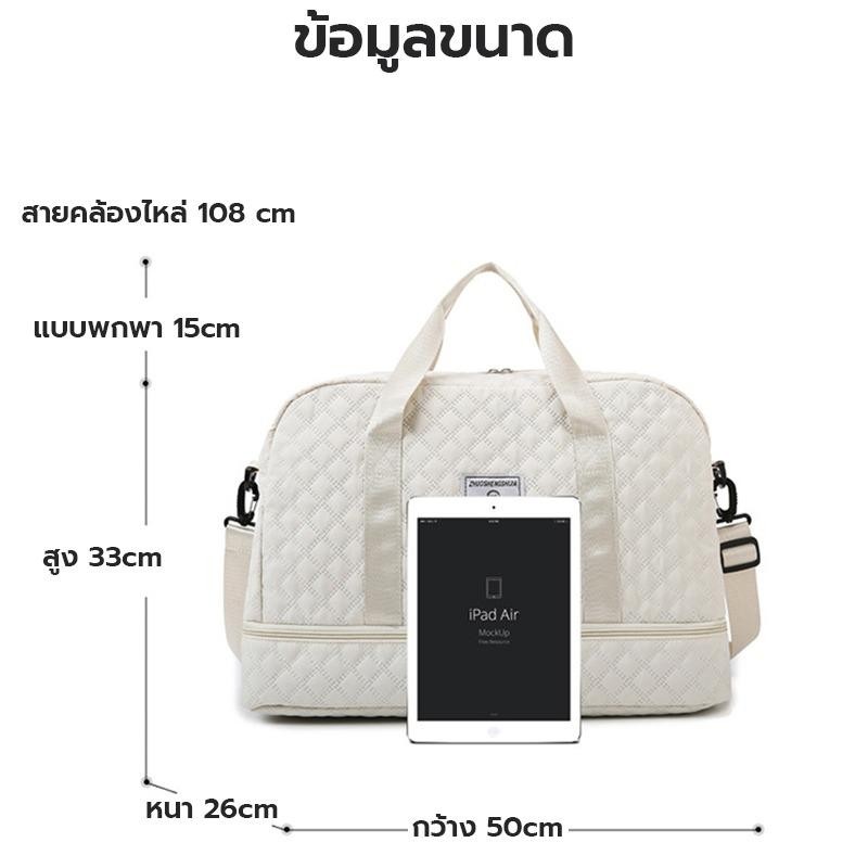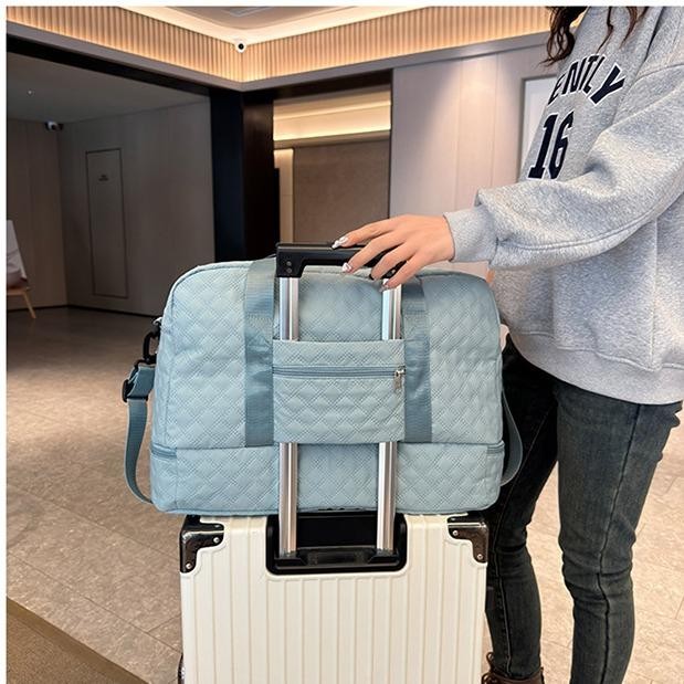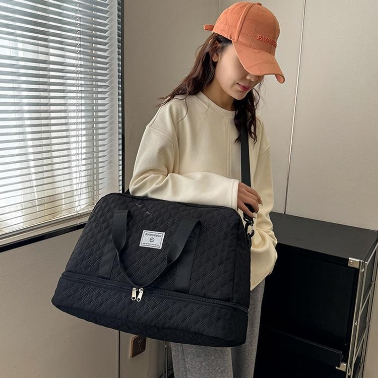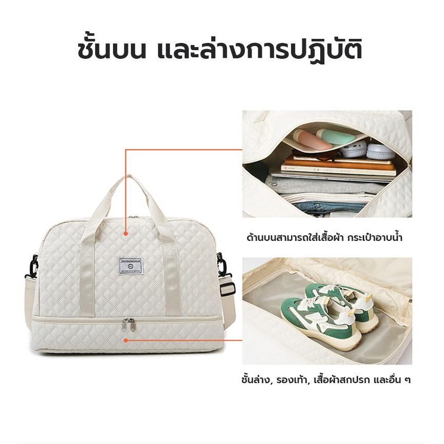 G&M,G กระเป๋าถือแฟชั่นทรงเพชรแยกส่วนเปียกและแห้ง ความจุขนาดใหญ่ กระเป๋าเดินทาง ช่องใส่รองเท้า