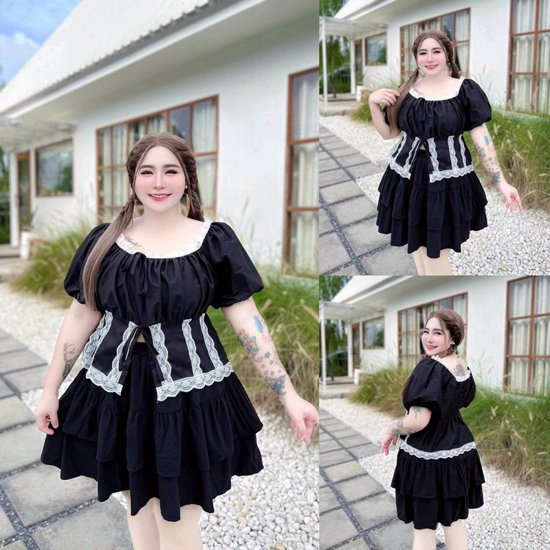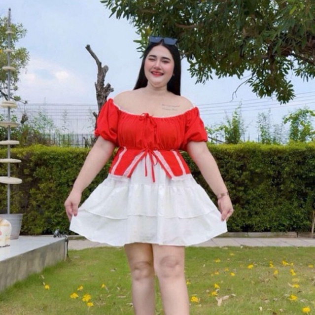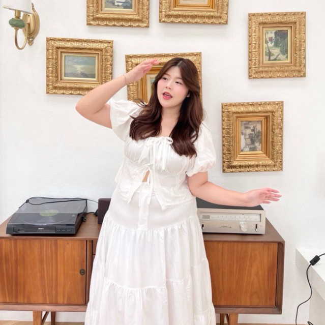 #40(ส่งเร็ว)เสื้อปาดไหล่แขนตุ๊กตาแต่งลูกไม้สีขาว มียางสม็อคด้านหลัง ผ้าไหมอิตาลี ไซส์ใหญ่ แฟชั่นสาวอวบ Bigsize Women