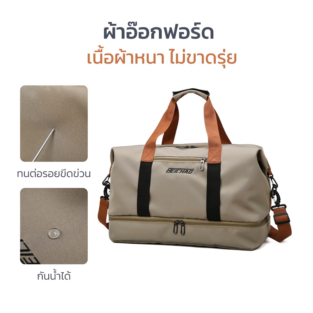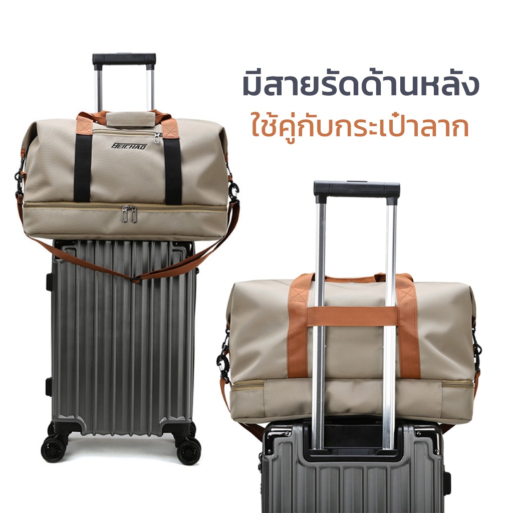 - ความจุใหญ่ มีช่องใส่รองเท้าในตัว ไม่ต้องหากระเป๋าใส่รองเท้าเพิ่ม
