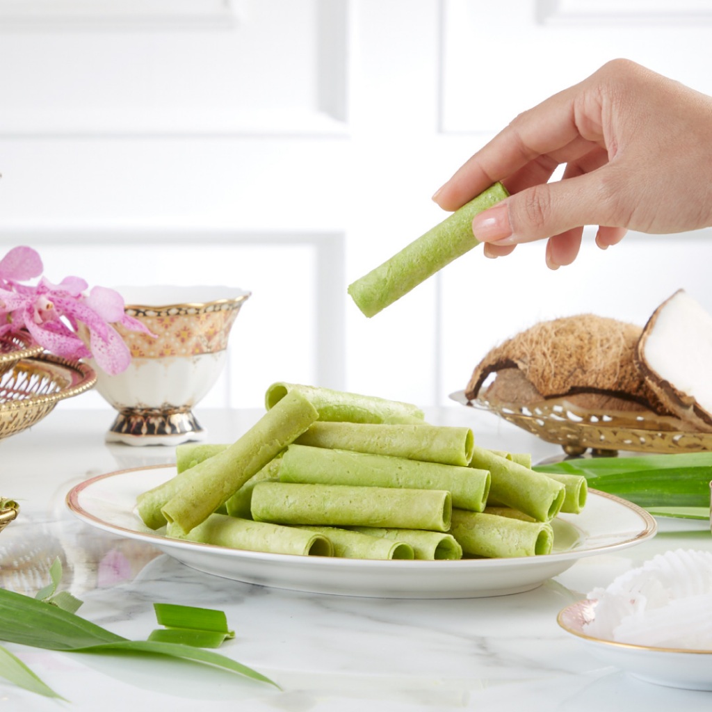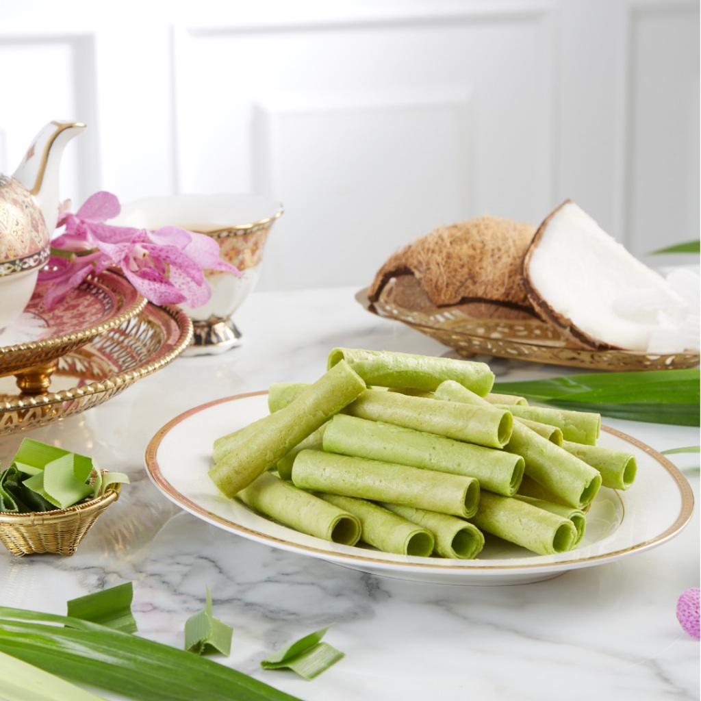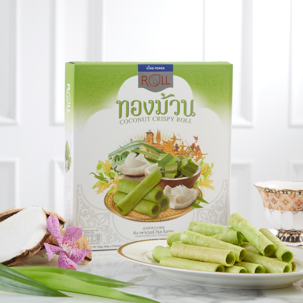 ทองม้วนกรอบที่มีกลิ่นหอมของใบเตยธรรมชาติ เข้ากันได้ดีกับกะทิสูตรพิเศษที่ทุกคนไม่ควรพลาด