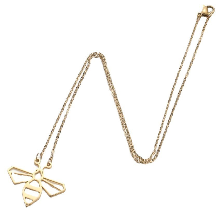 สร้อยคอสแตนเลส จี้รูปสัตว์ ผึ้ง เสือ สุนัขจิ้งจอก สีทอง เครื่องประดับแฟชั่น สําหรับทุกเพศ