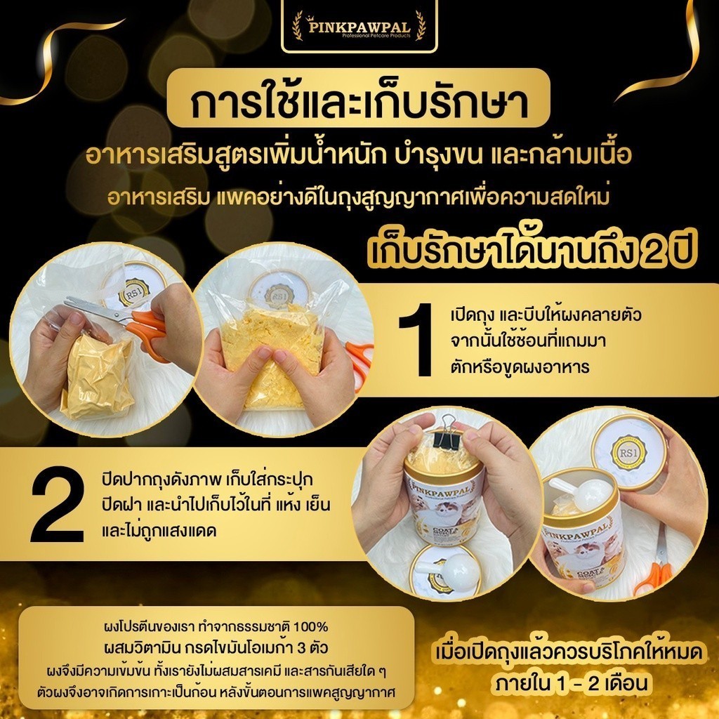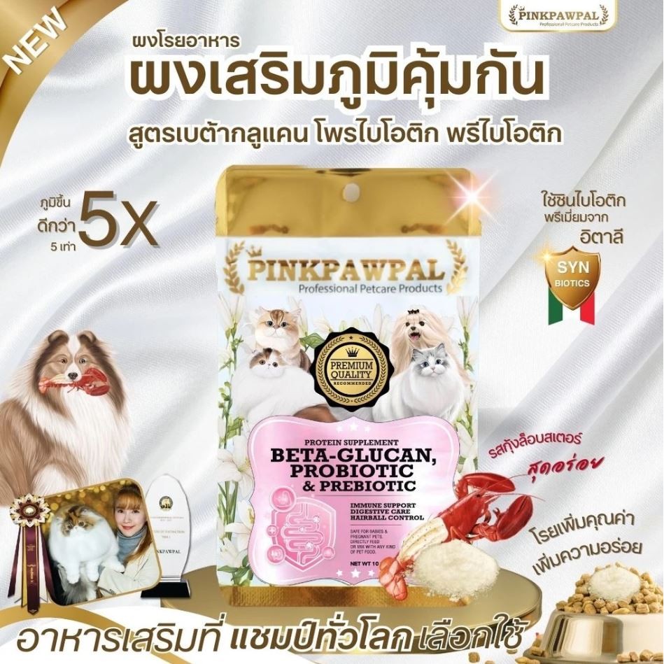 [แบบซอง] PINKPAWPAL ผงโปรตีน เสริมภูมิ บำรุงขน เพิ่มน้ำหนัก เพิ่มกล้ามเนื้อหมาแมว ขนาดทดลอง 10-20g