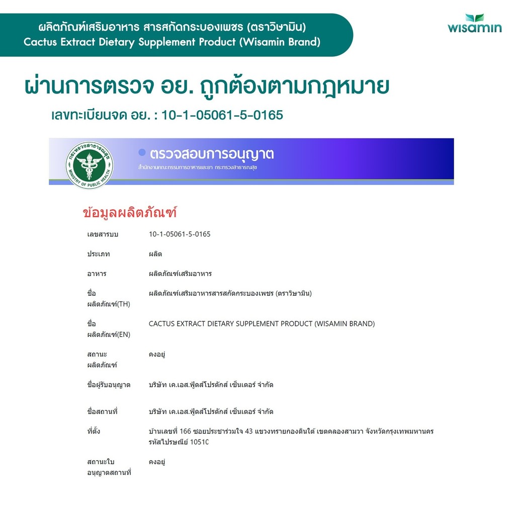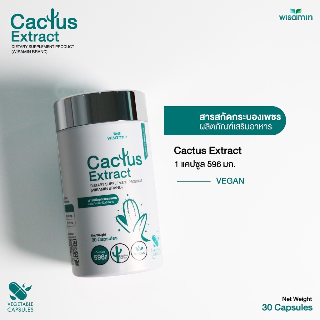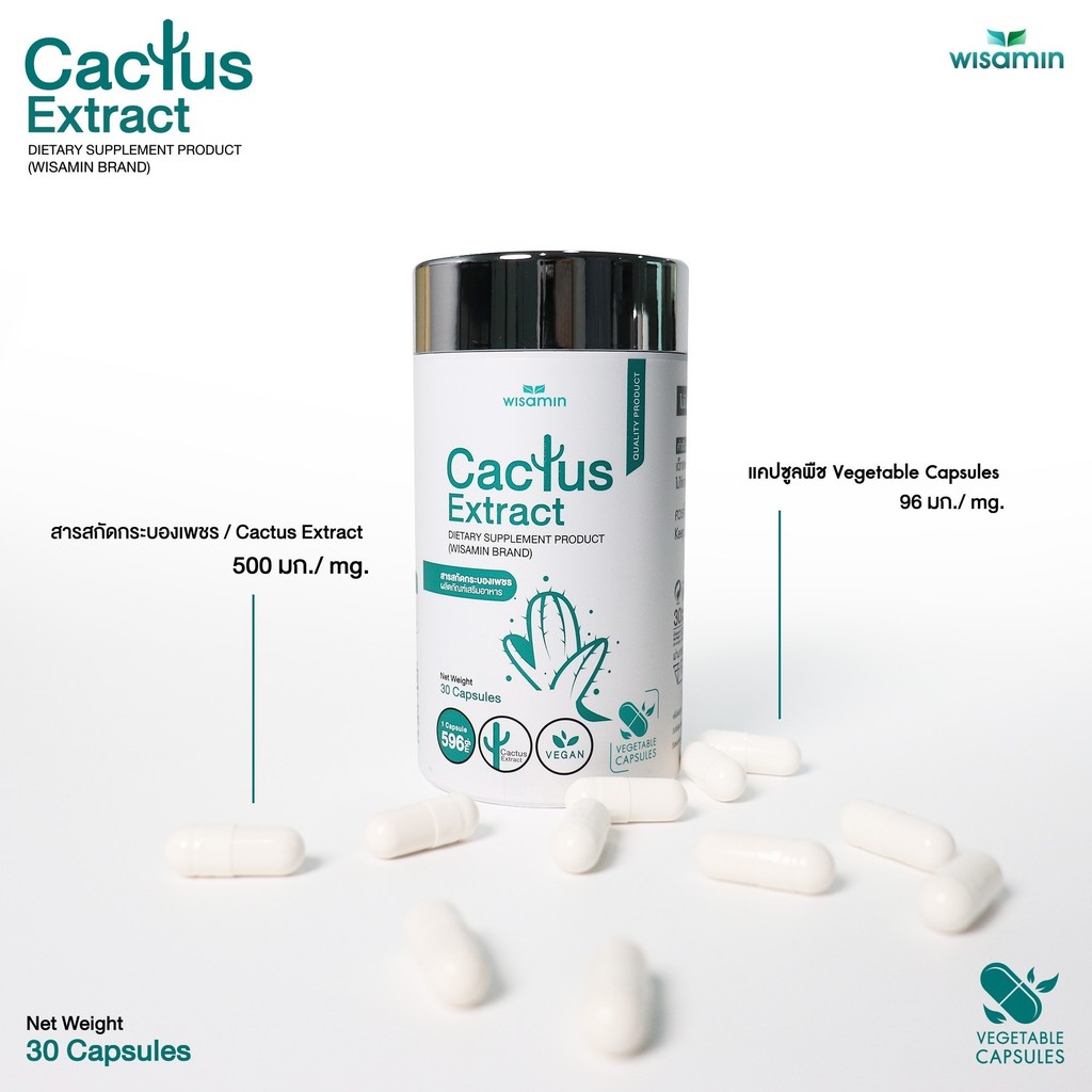 CACTUS EXTRACT สารสกัดกระบองเพชร บรรจุแคปซูล 500 mg. VAGAN จำนวน 1 กระปุก 30 แคปซูล (ตราวิษามิน)