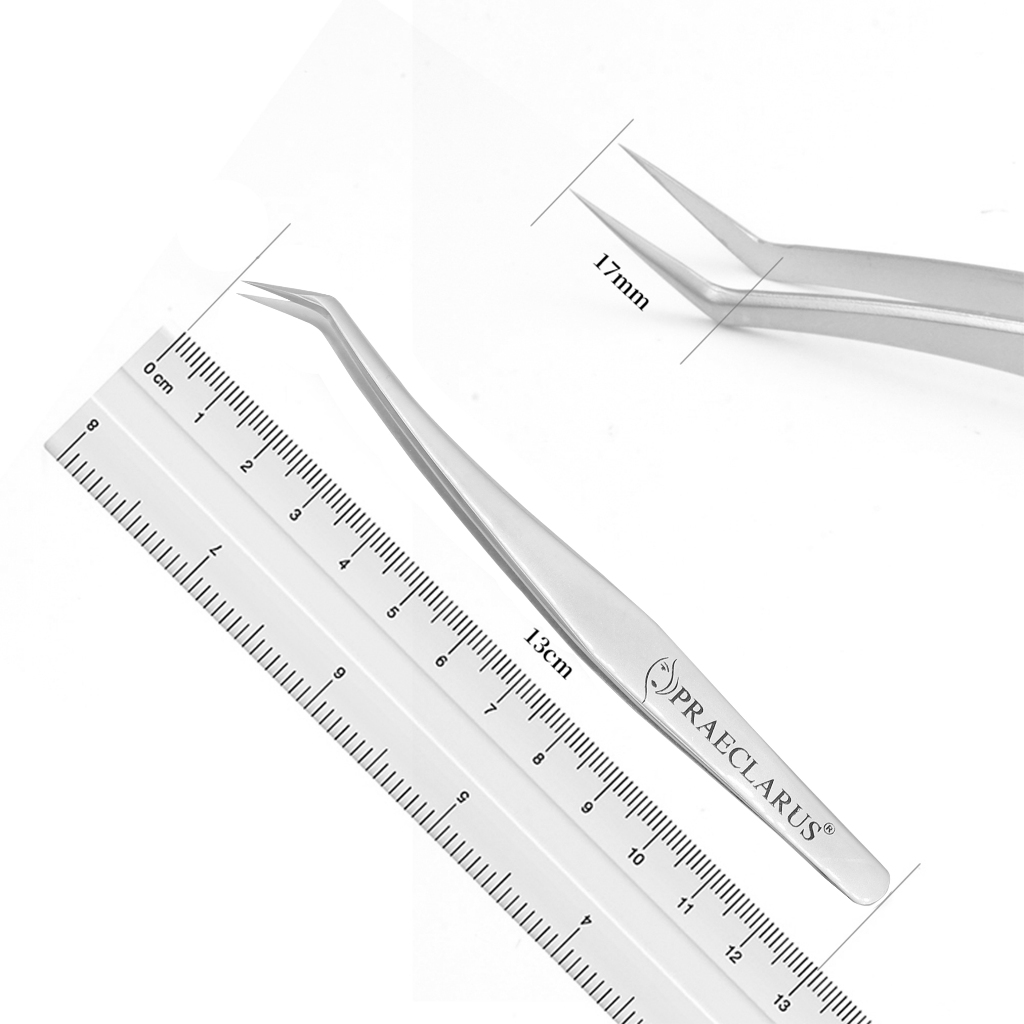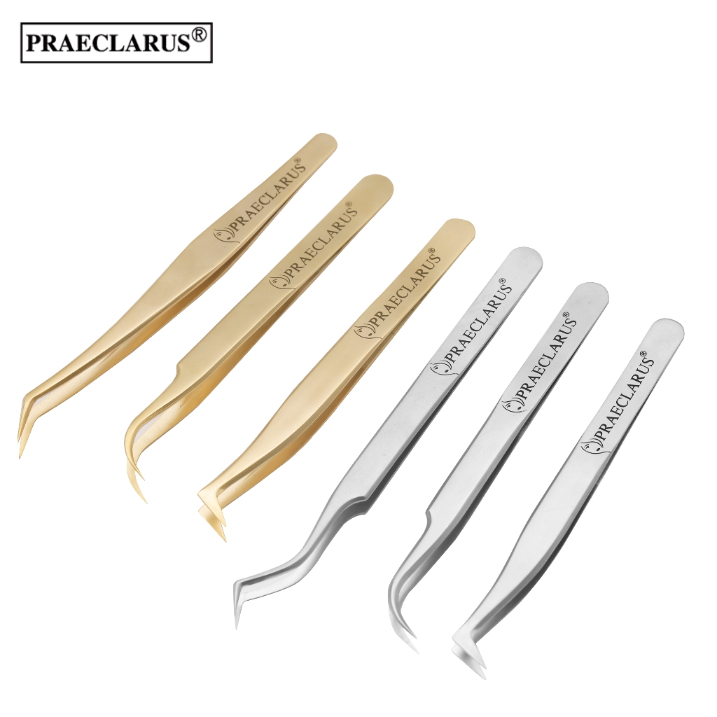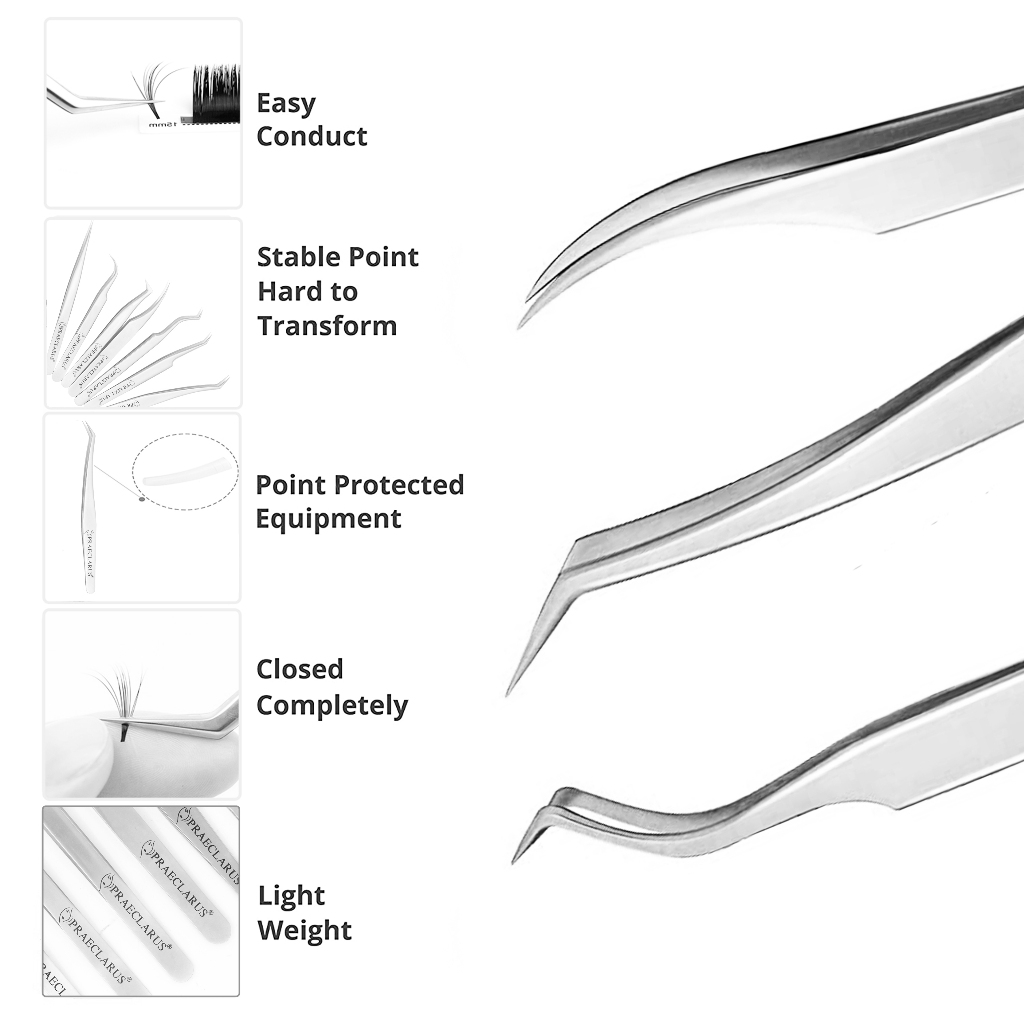 Praeclarus แหนบสําหรับต่อขนตาสแตนเลสตรงโค้งเล็บเครื่องมือแหนบปริมาณแฟนขนตา Silver Series แหนบป้องกันไฟฟ้าสถิตเครื่องมือแต่งหน้า