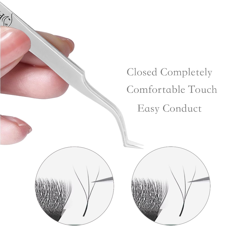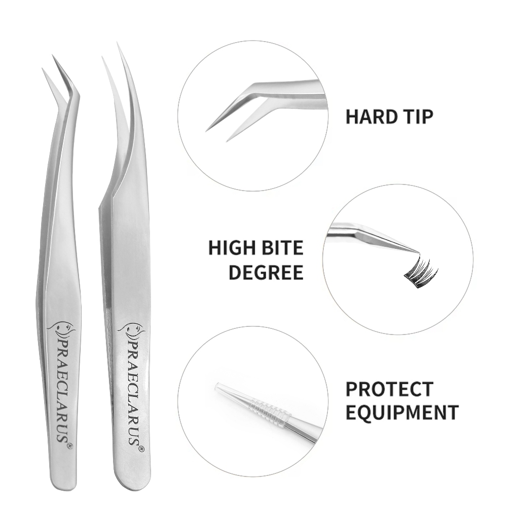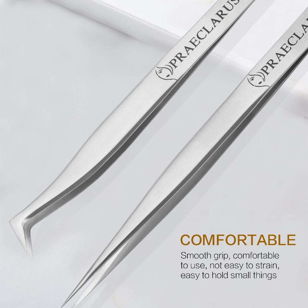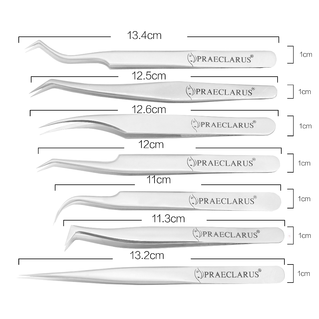 Praeclarus แหนบสําหรับต่อขนตาสแตนเลสตรงโค้งเล็บเครื่องมือแหนบปริมาณแฟนขนตา Silver Series แหนบป้องกันไฟฟ้าสถิตเครื่องมือแต่งหน้า