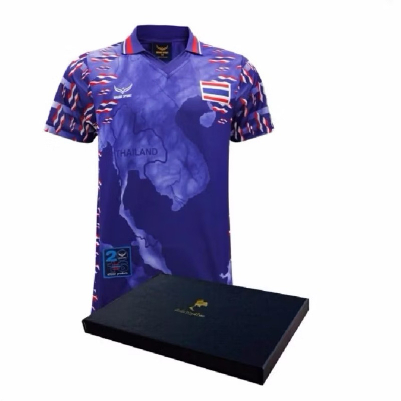 เสื้อฟุตบอลศักดิ์ศรีปฐพีไทยสีน้ำเงิน ไซส์ XL(อก 43) มาพร้อมกล่อง Box Set และเสื้อจิ๋วติดกระจก