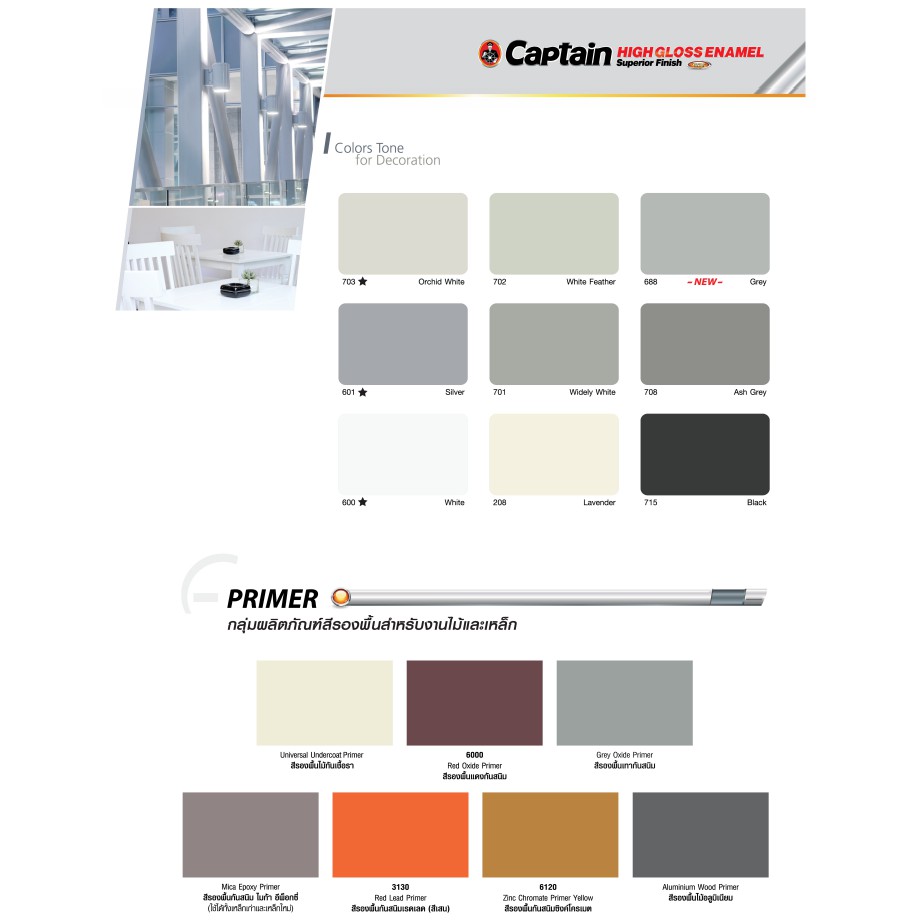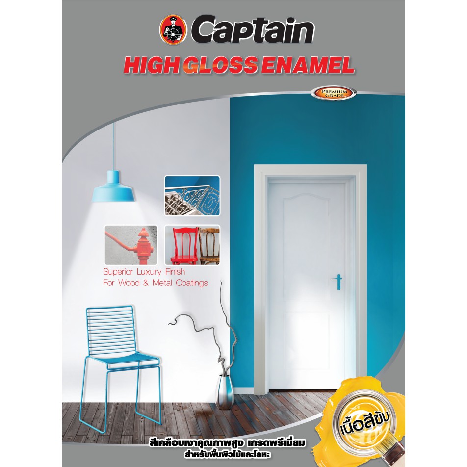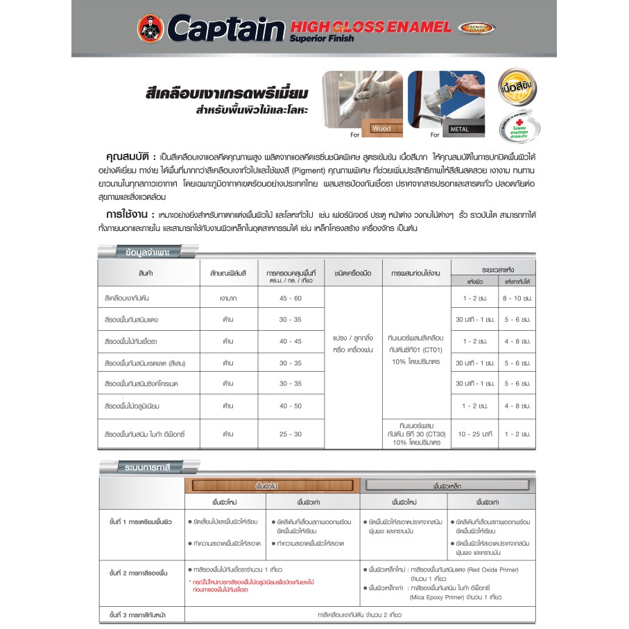 สีน้ำมัน ชุดที่ 2 Captain High Gloss สีเคลือบเงา เหล็ก ไม้ แห้งไว ป้องกันสนิม ขนาด 1 ลิตร สีทาเหล็ก สีทาไม้ สีกันสนิม