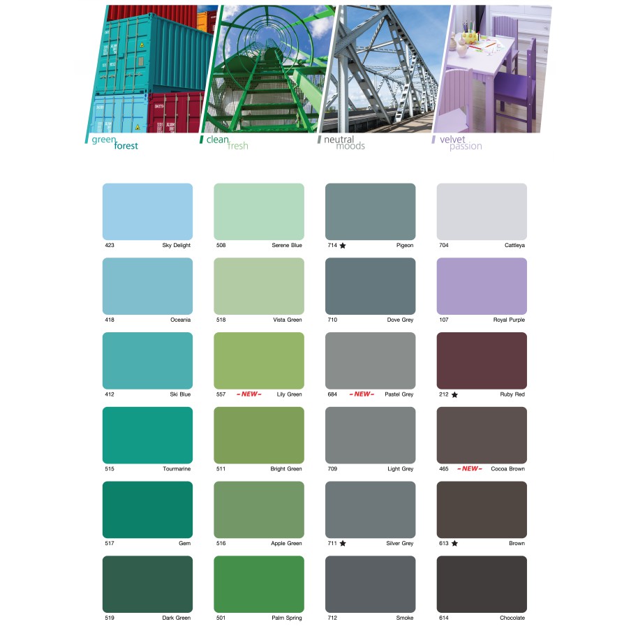 สีน้ำมันประเภทแอลขีดคุณภาพเยี่ยม สีสันสวยสดงดงามด้วย Pigment หรือผงสีของ Clariant จากประเทศเยอรมัน ซึ่งถือได้ว่าเป็นผงสีสำหรับแม่สีที่มีคุณภาพดีที่สุดเป็นที่ยอมรับทั่วโลก เหมาะอย่างยิ่งสำหรับงานเฟอร์นิเจอร์ไม้และงานเหล็กทั้งภายนอกและภายใน