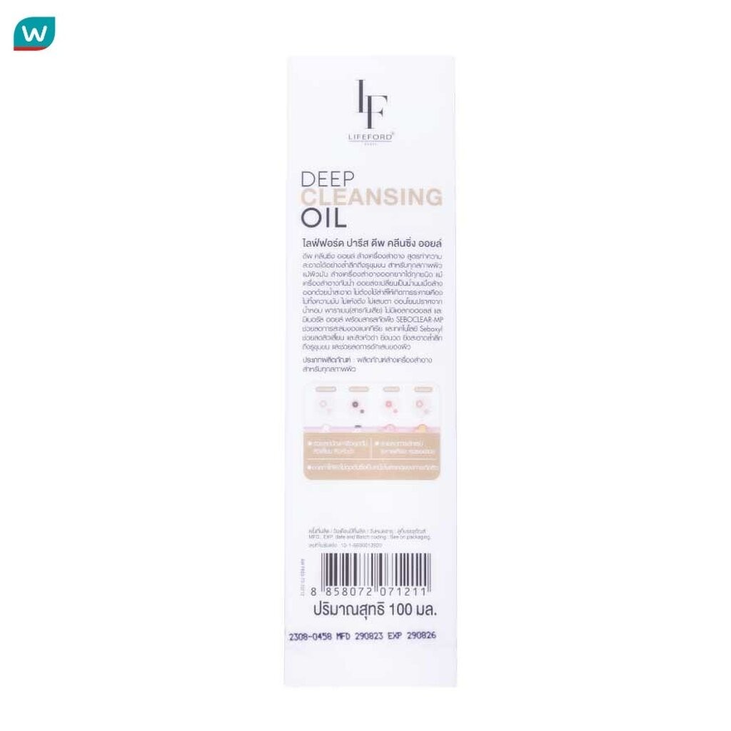 ไลฟ์ฟอร์ด ปารีส ดีพ คลีนซิ่ง ออยล์ ขนาด 100มล ผลิตภัณฑ์ล้างเครื่องสำอางสำหรับทุกสภาพผิว สูตรทำความสะอาดได้อย่างล้ำลึกถึงรูขุมขน เหมาะสำหรับทุกสภาพผิวแม้ผิวมัน ล้างเครื่องสำอางชนิดที่ล้างออกยากได้ทุกชนิด แม้เป็นเครื่องสำอางกันน้ำ ออยล์จะเ