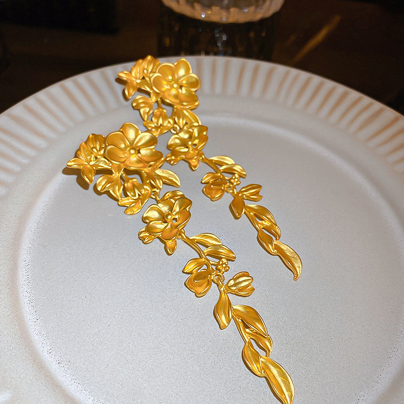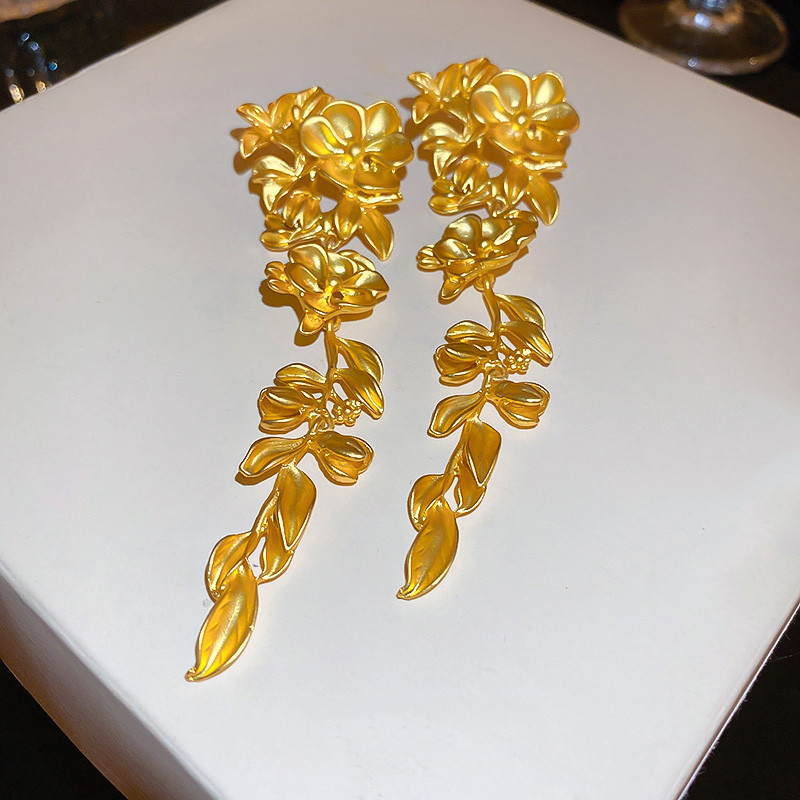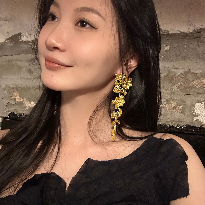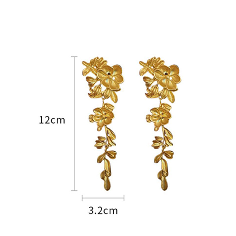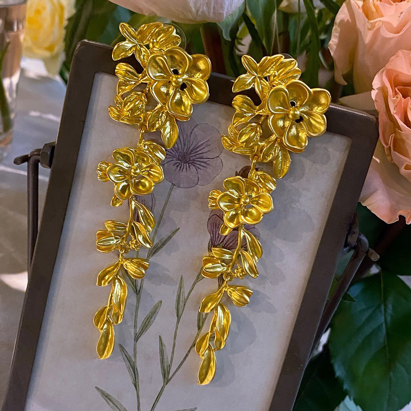 ต่างหู รูปดอกไม้ สามมิติ สีทอง หรูหรา สไตล์ฝรั่งเศส เรโทร