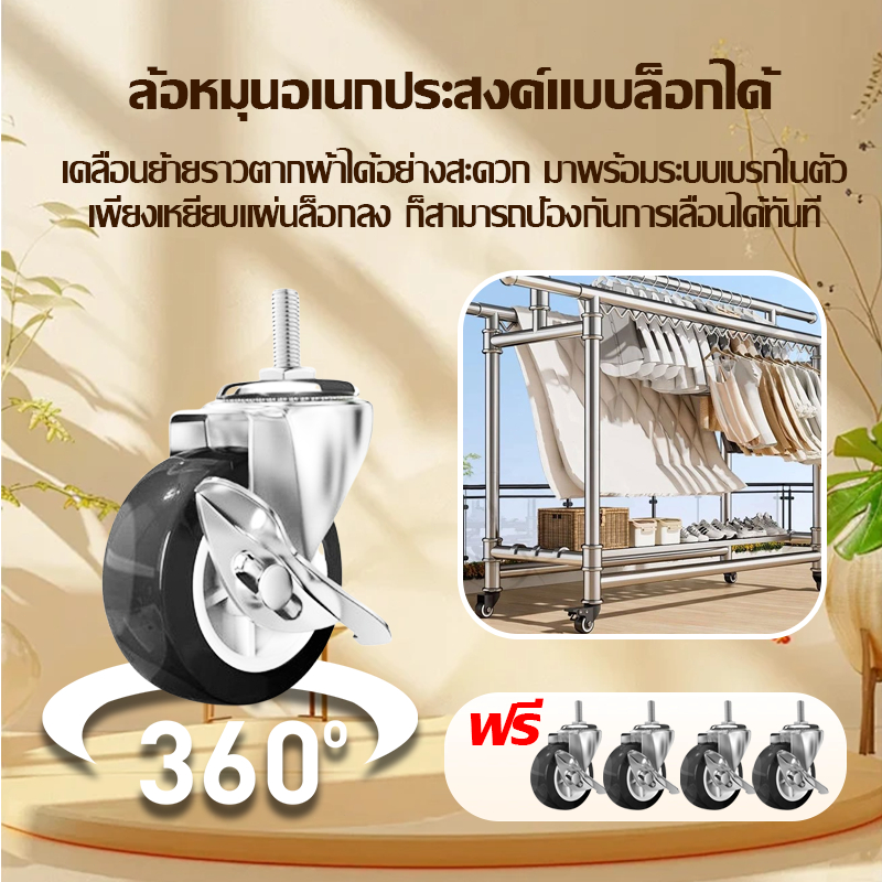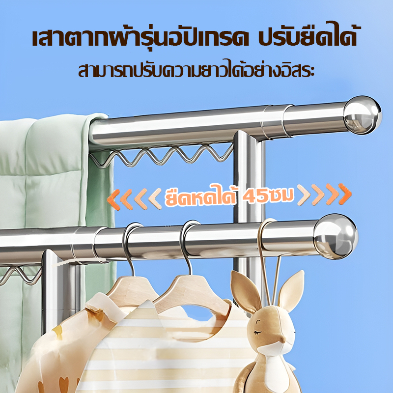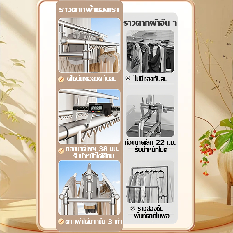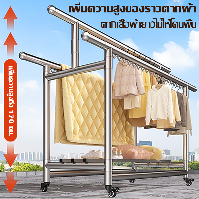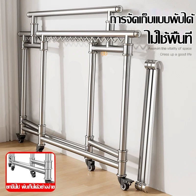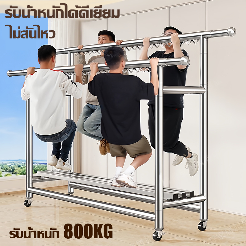 ?รับน้ำหนักได้ 800กก?ราวตากผ้า 304 ท่อ38หนาพิเสษ SUS304 ยืดไสลด์ได้ พับเก็บได้ เคลื่อนไหว 165*60*120-200cm