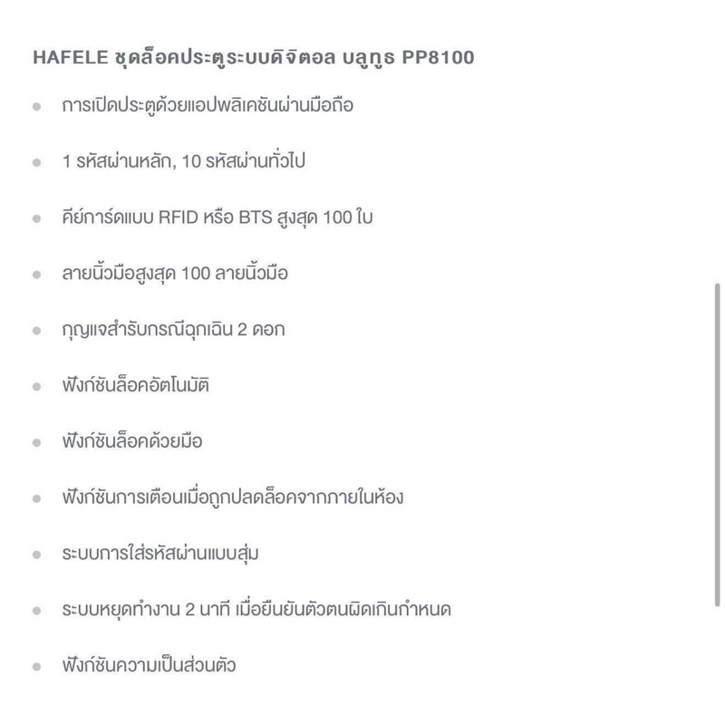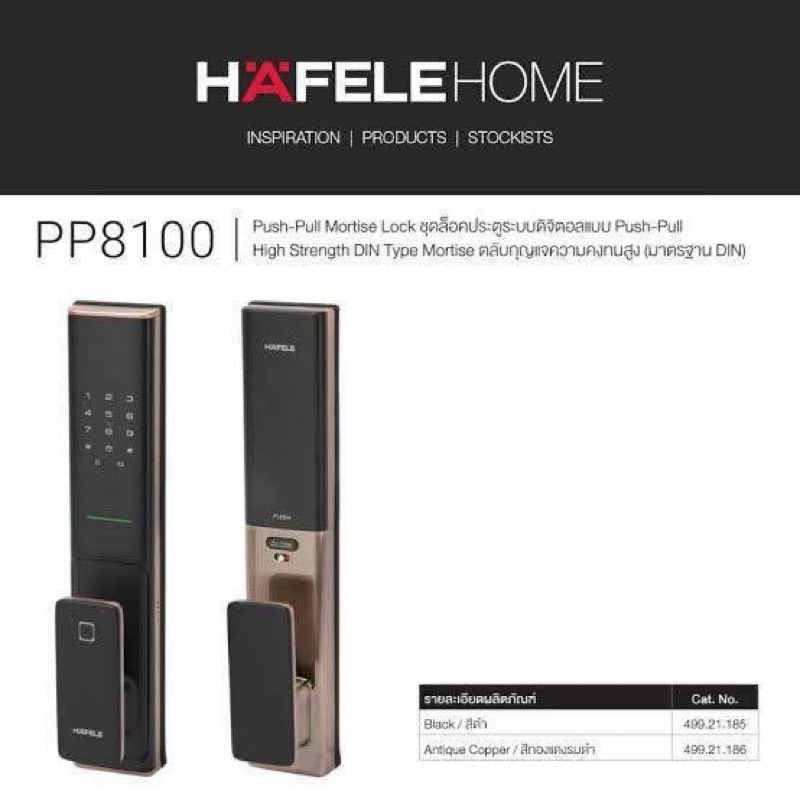HAFELE ชุดล็อคประตูระบบดิจิตอล บลูทูธ PP8100
