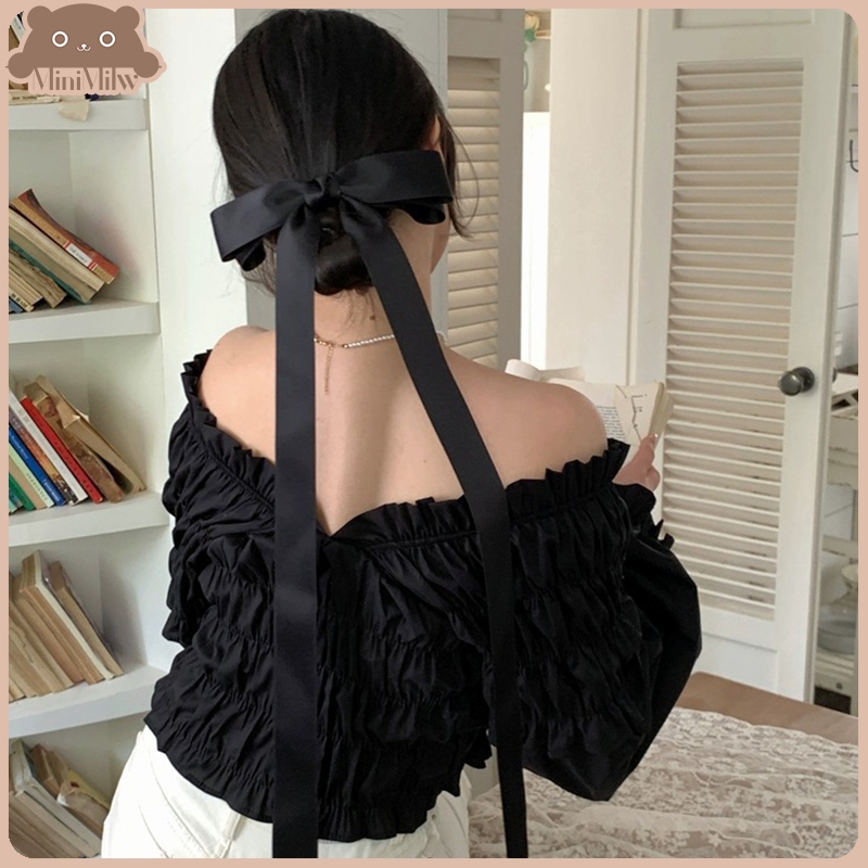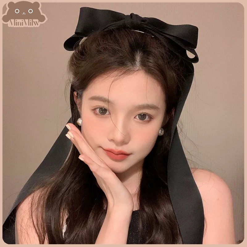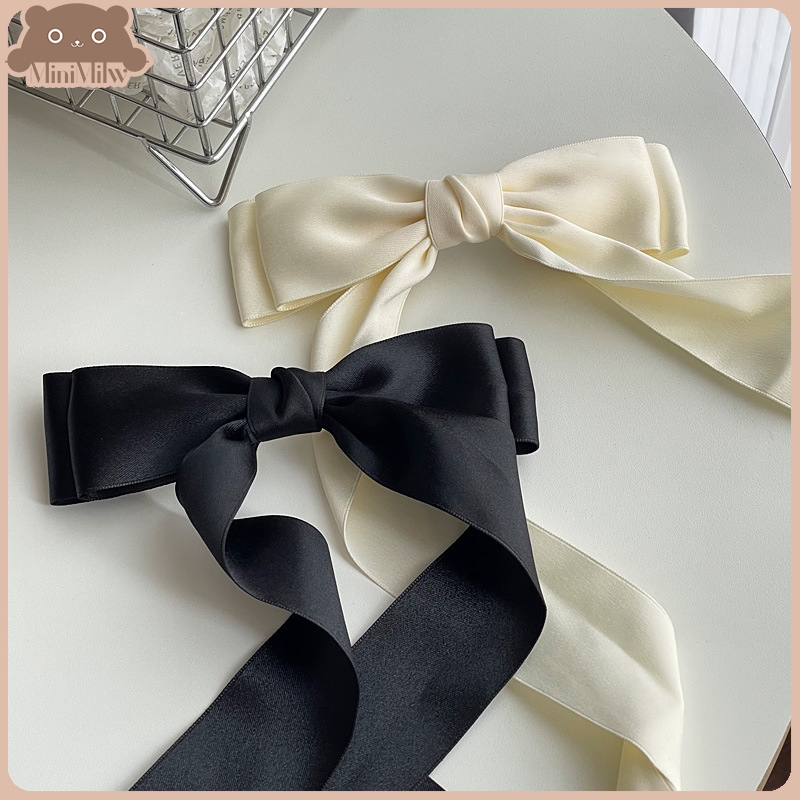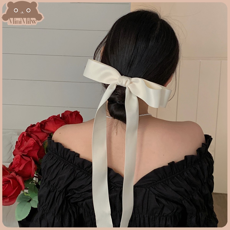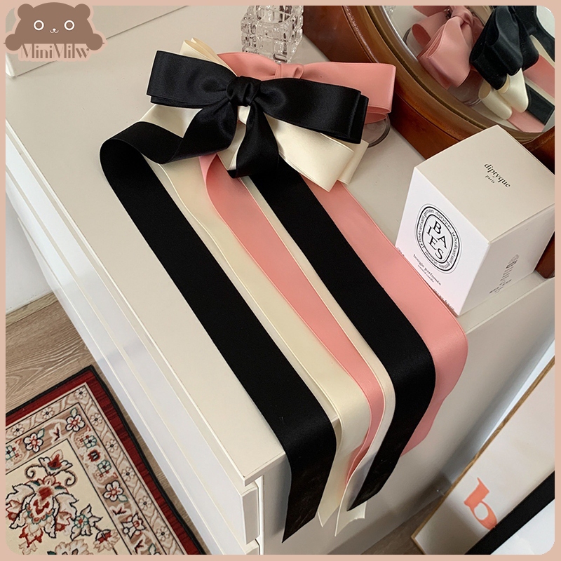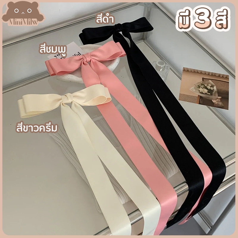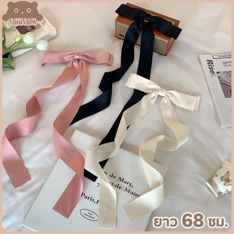 [พร้อมส่ง] กิ๊บติดผมโบว์ปลายยาว 68 ซม. ผ้าดีงานสวย มี 3 สี ชมพู ดำ ขาวครีม สไตล์เกาหลี ติดได้หลายลุค : MiniMilwʕ•ᴥ•ʔ