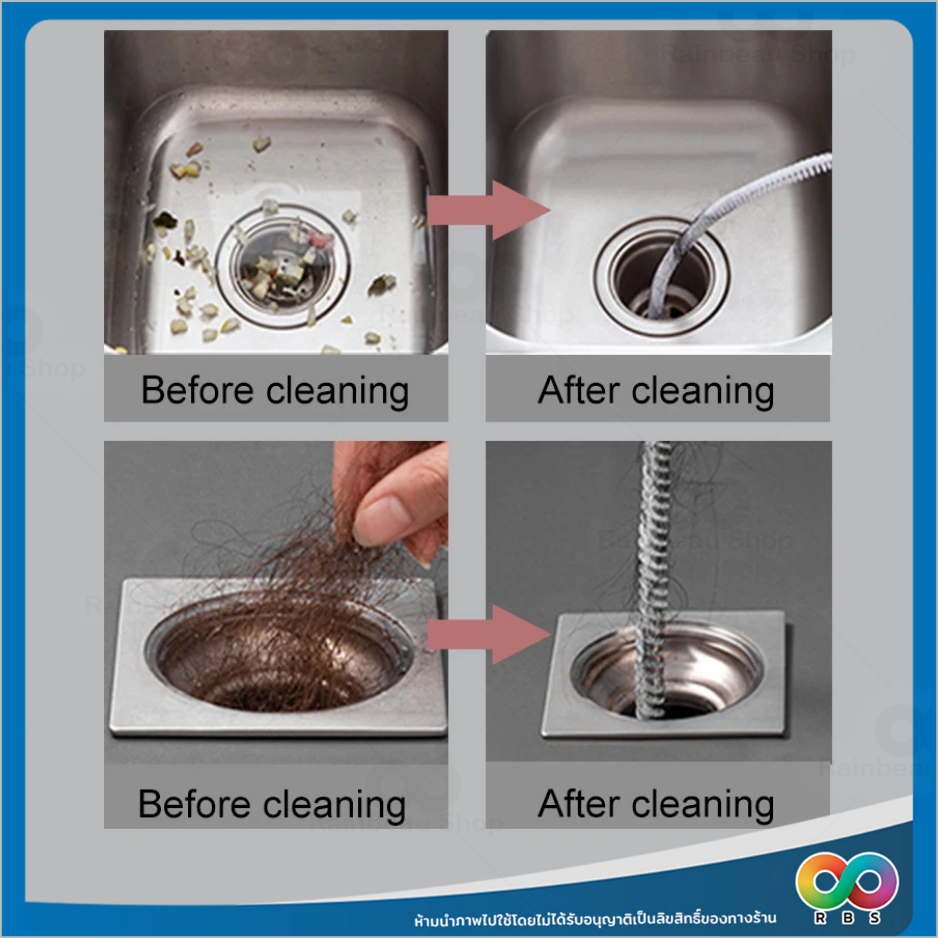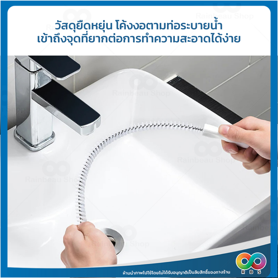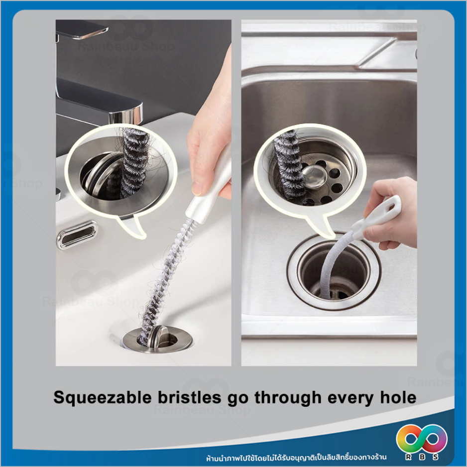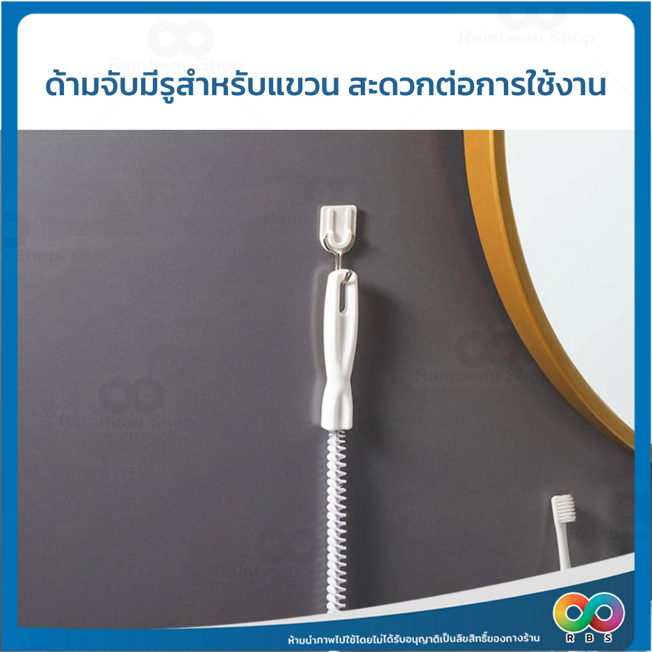 RAINBEAU แปรงขัด ทะลวงท่อ งูเหล็ก แปรงทำความสะอาดท่อระบาย ด้ามยาว จับถนัดมือ สำหรับล้วงดึงเส้นผมเเละเศษขยะอุดตัน