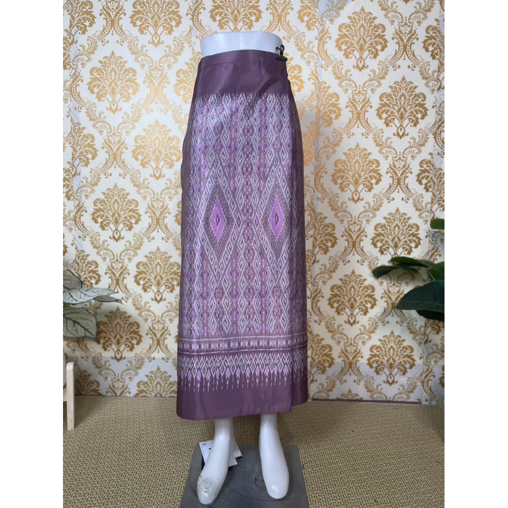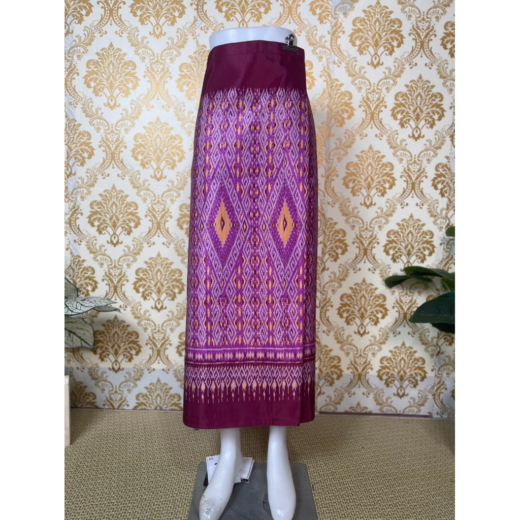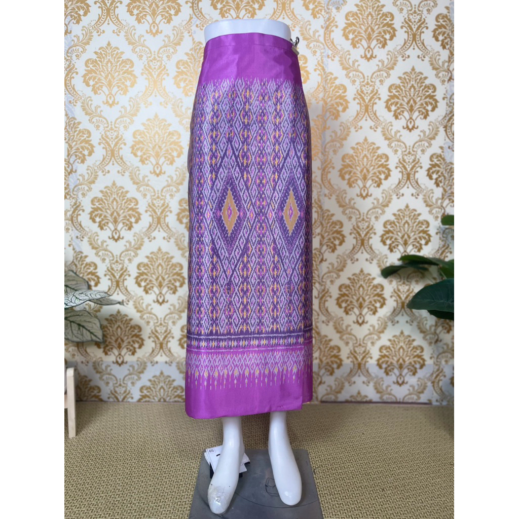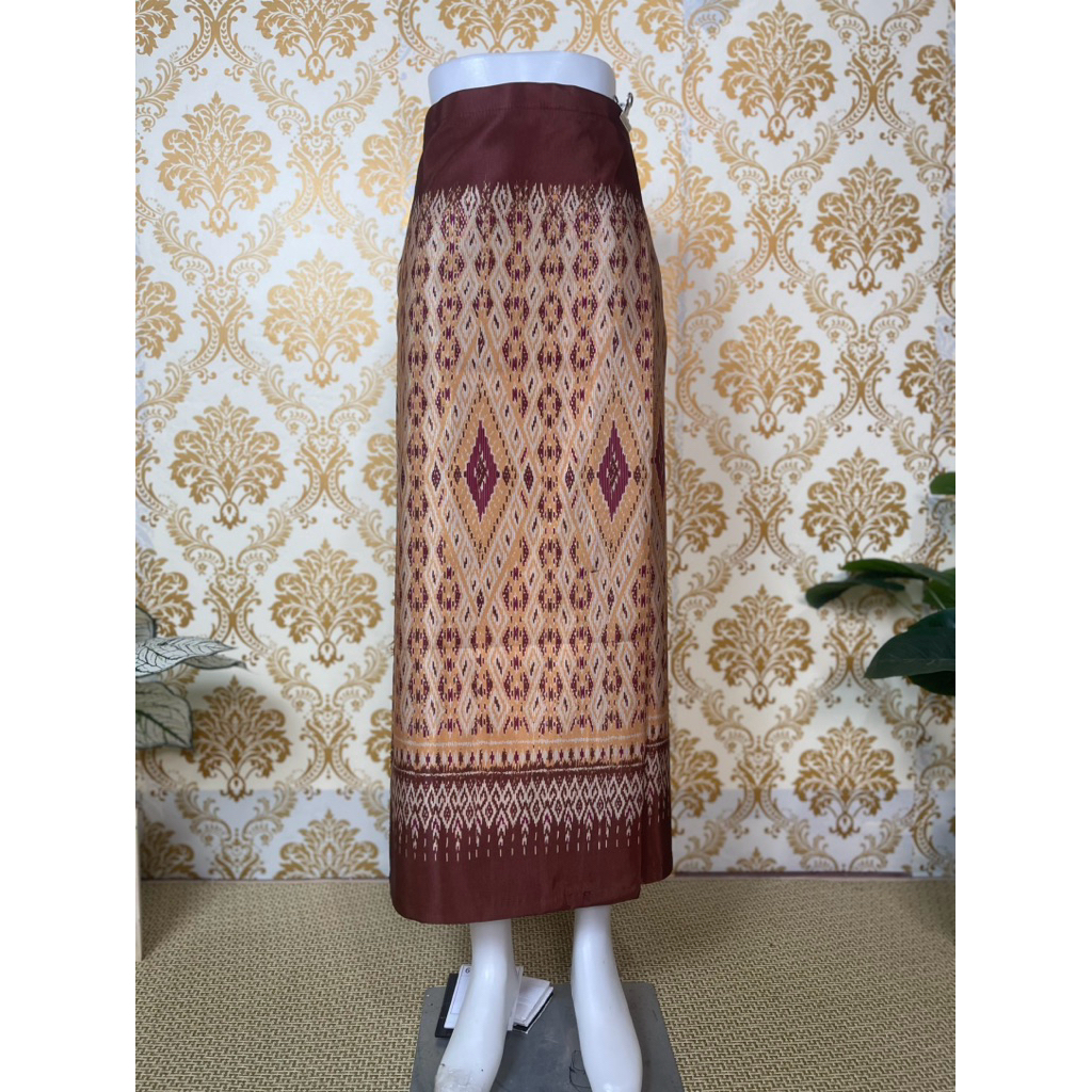 ผ้าถุงเนื้อไหม ไหมเกษตร เนื้อนุ่มผ้าเงา ตัดเย็บแบบป้ายติดตะขอ(อัดกาว)