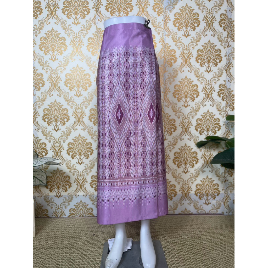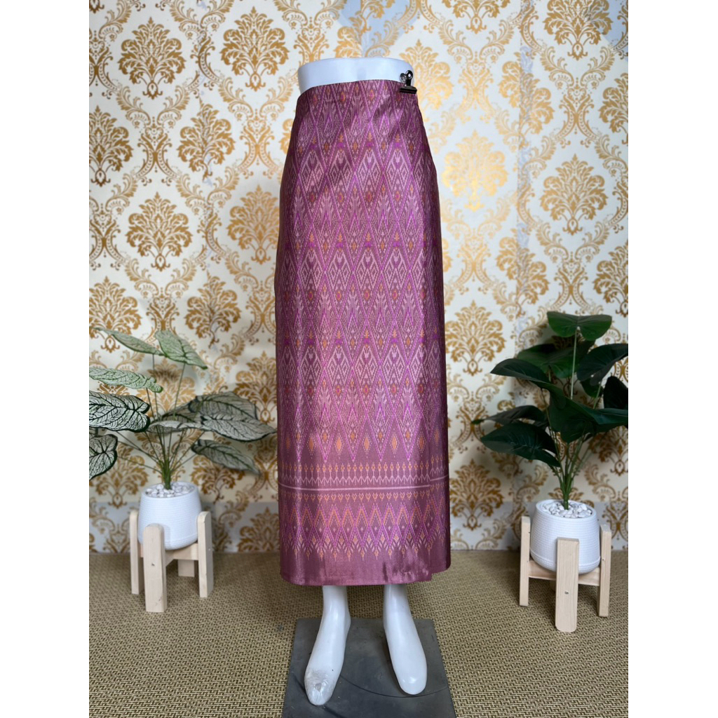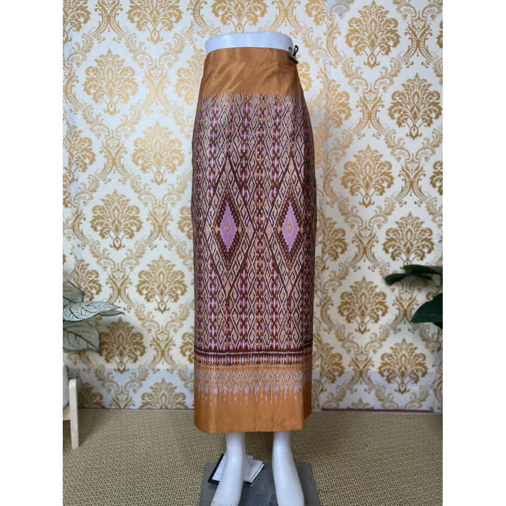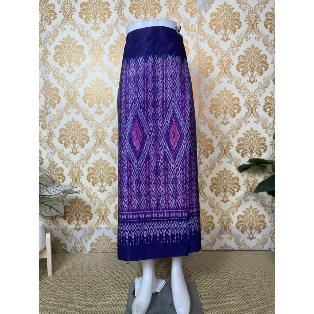 ผ้าถุงเนื้อไหม ไหมเกษตร เนื้อนุ่มผ้าเงา ตัดเย็บแบบป้ายติดตะขอ(อัดกาว)