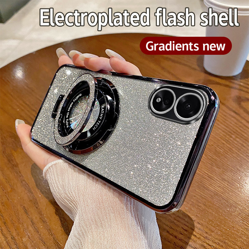 เคส OPPO A60 A38 A18 A58 A78 5G A98 5G A17 A17K A16K A16 A15S A15 ขาตั้งระยิบระยับเคสโทรศัพท์โปร่งใส ZJSF