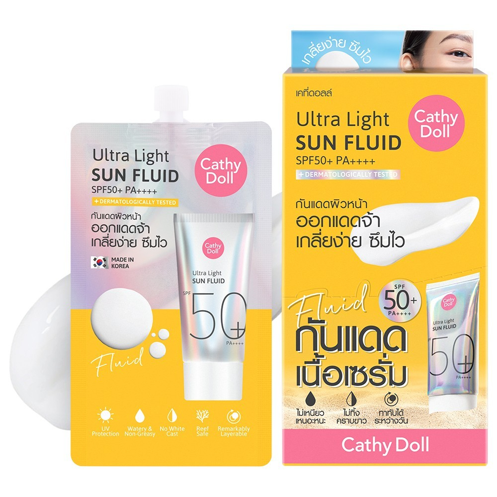 (1ซอง) Cathy Doll Ultra Light Sun Fluid SPF50+ PA++++ 7ml กันแดดเนื้อเซรั่ม