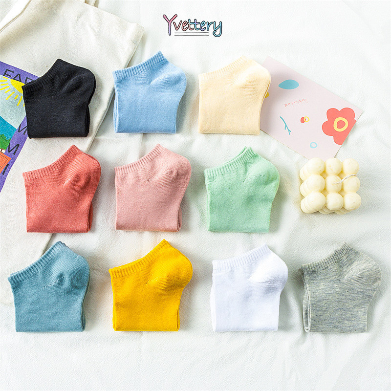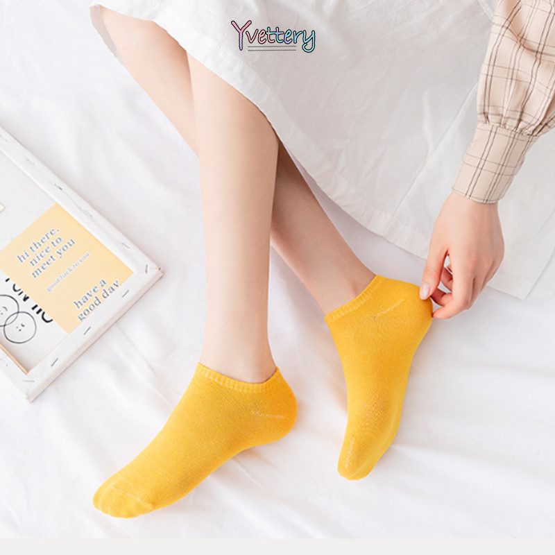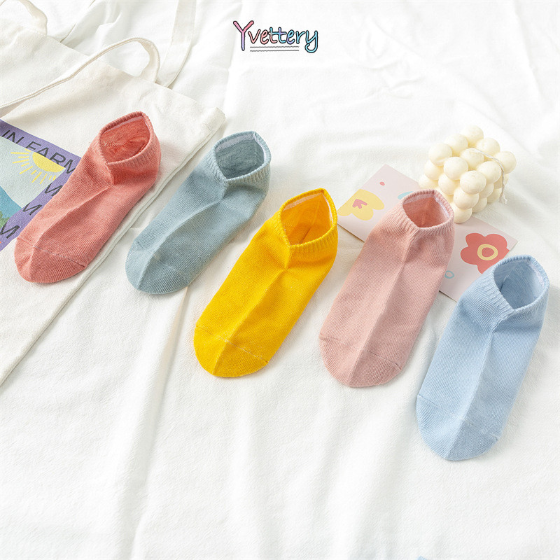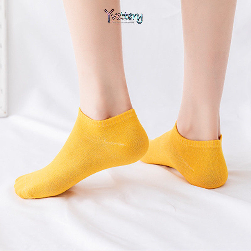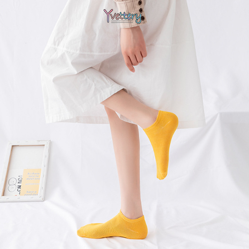 ร้านค้าไทย♥️ผู้หญิงถุงเท้าที่มองไม่เห็นถุงเท้าผ้าฝ้ายโพลีเอสเตอร์ด้านบนต่ำถุงเท้าเรือสีทึบ
