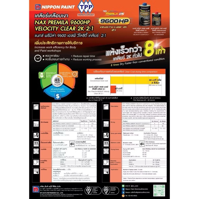 แต่ยังคงความเงา ฉ่ำ ลึก เช่นเดิมด้วยประสิทธิ์ภาพ”เคลียร์แห้งเร็ว 45 นาที ขัดเงาได้โดยไม่ต้