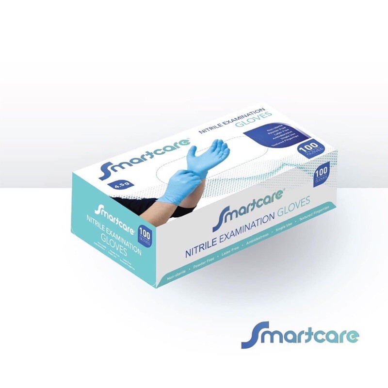 (ยกลัง1000ชิ้น) ถุงมือยางไนไตรสีฟ้า สมาร์ทแคร์ ไร้แป้ง กล่อง 100 ชิ้น ถุงมือแพทย์ ถุงมือไนไตร ถุงมือศรีตรัง