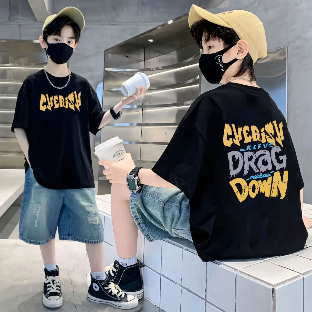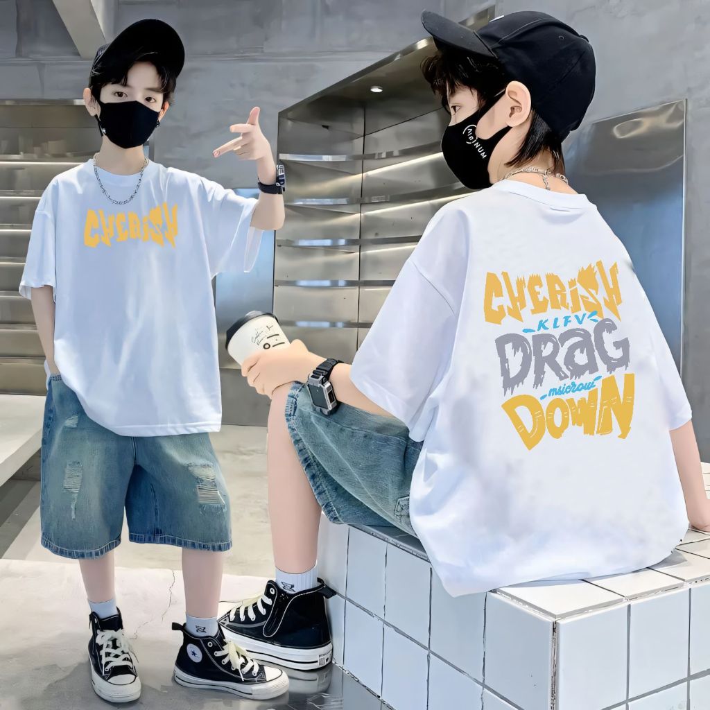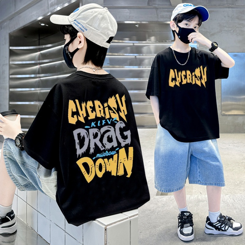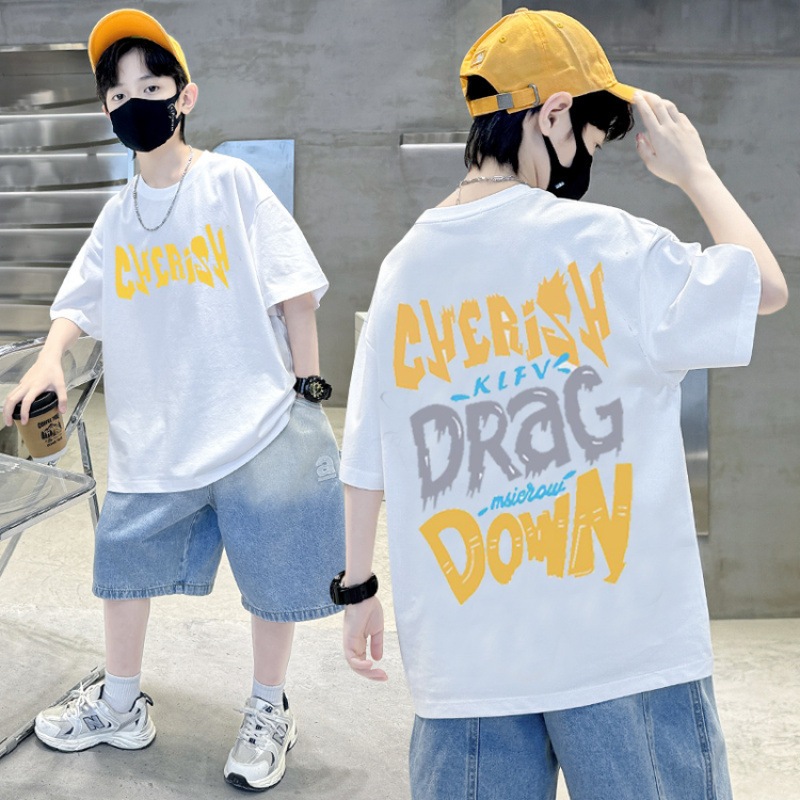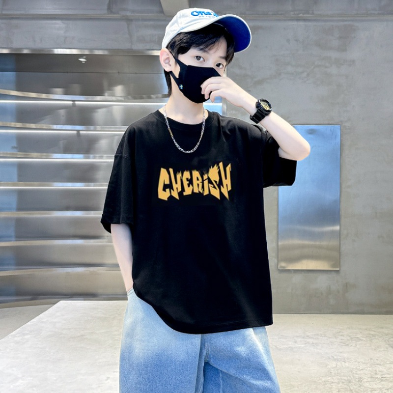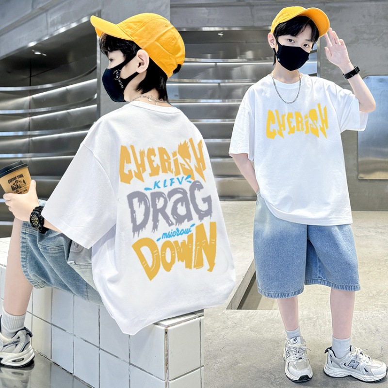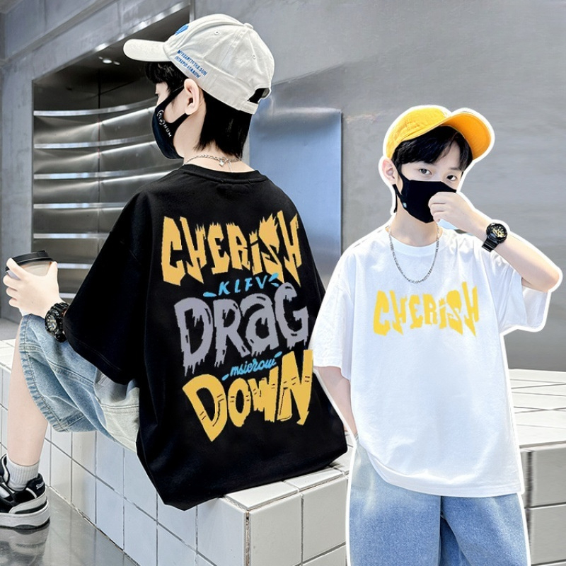 เสื้อยืดเด็กผู้ชาย เสื้อเชิ้ตแขนสั้นสำหรับเด็ก เสื้อเด็กผู้ชาย คอกลม แฟชั่น เทรนด์ ผ้าฝ้าย ฤดูร้อน สันทนาการ 6-12 ปี