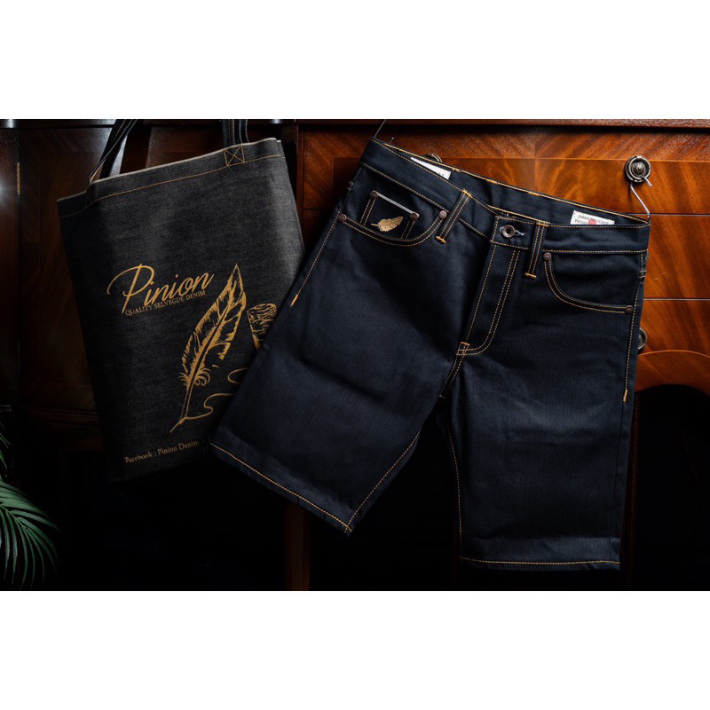 pinion denim15oz shorts legขาสั้นผ้าindigo x Black