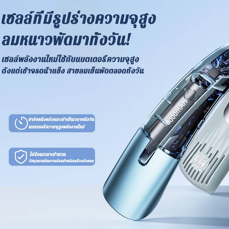 [รับประกัน3ปี]ZANHE พัดลมคล้องคอ 8000mahไร้ใบพัด ไม่ติดผม ชาร์จUSB ปรับลมได้ 5 ระดับ พัดลมห้อยคอ พัดลมพกพาคล้องคอ