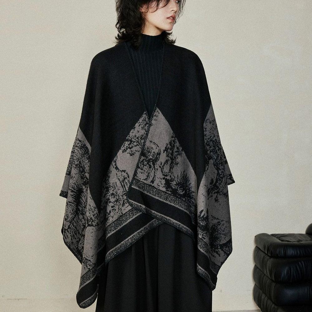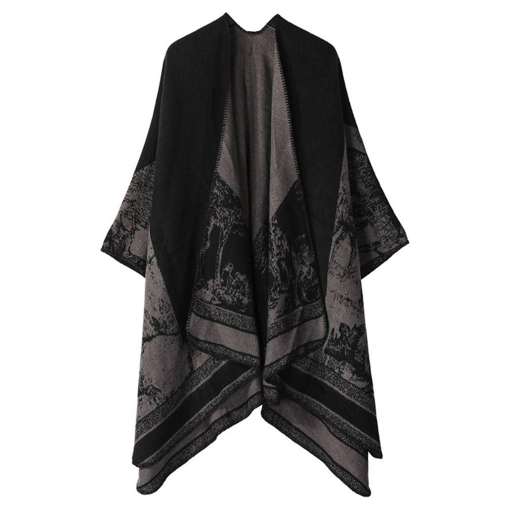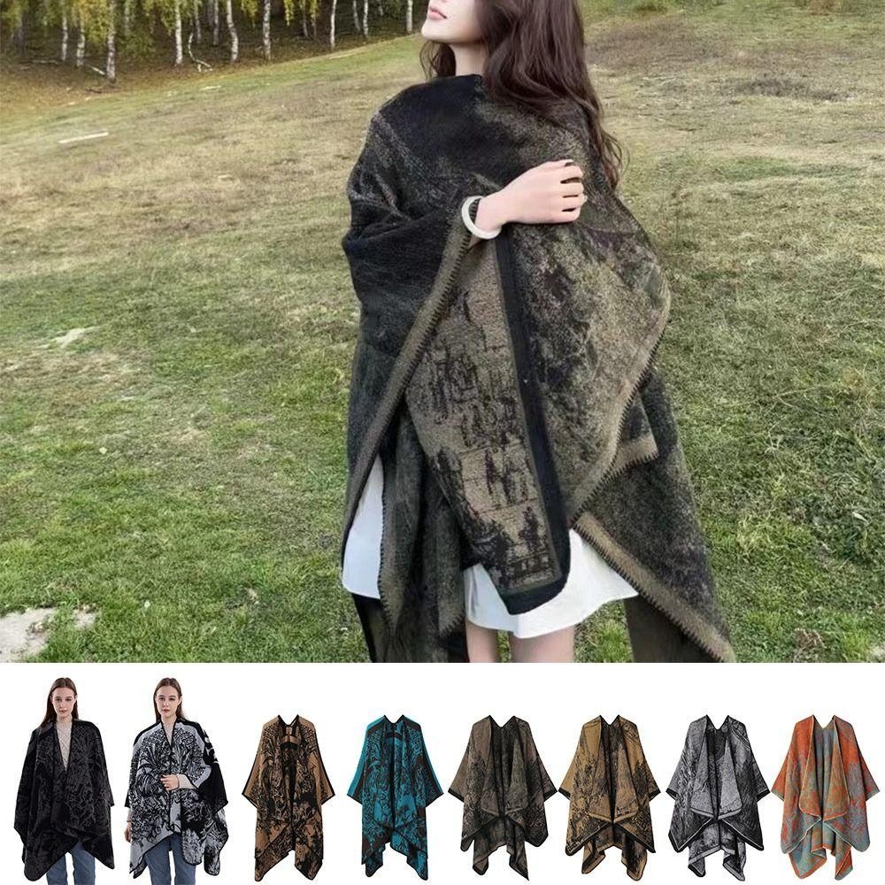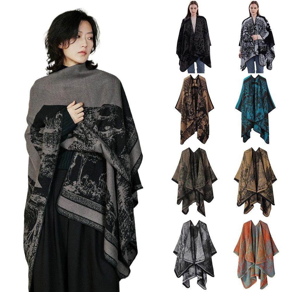 โบลูโอมิ ขนแกะผ้าคลุมไหล่,กลางแจ้งข้นแคชเมียร์ผ้าคลุมไหล่เคป,แฟชั่นวินเทจฤดูหนาวที่อบอุ่นเสื้อคลุมคาร์ดิแกนชุดราตรี