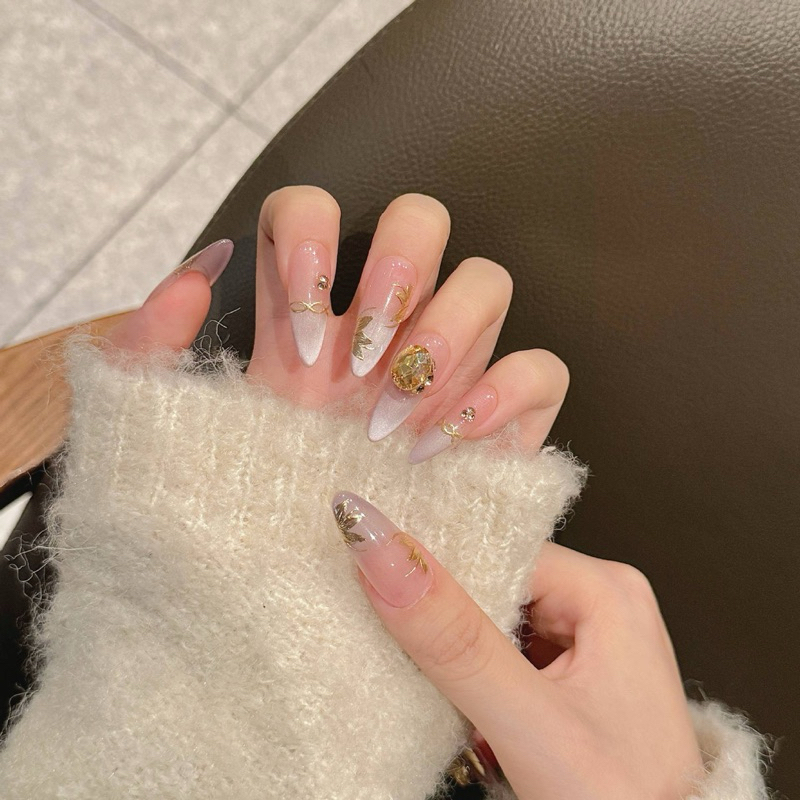 Handmade A2068 Golden Magic Mirror ดอกไม้ High-end Cat Eye ฝรั่งเศส Ins ยาวชี้รอบเล็บปลอม