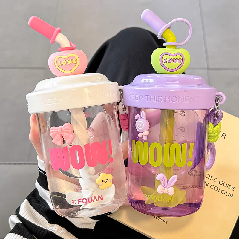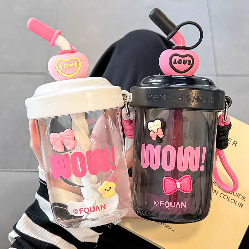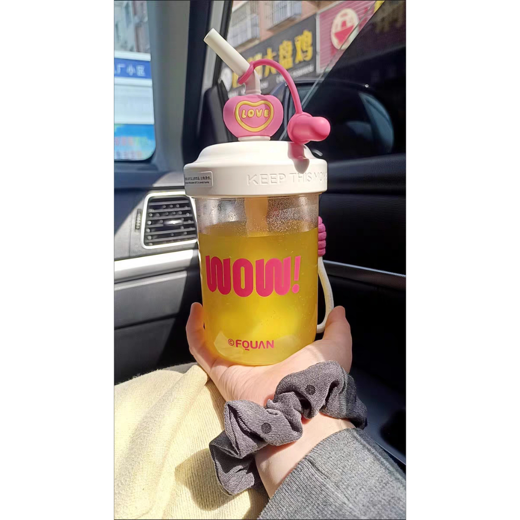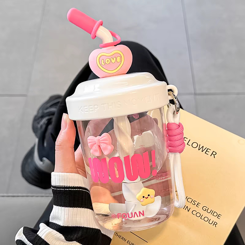 ราคาล้างสต็อก? ขวดน้ํา แก้ว แก้วน่ารัก ปั่นด้วยอัตโนมือ ขวดน้ำพกพา 580ml แก้วพลาสติก พร้อมหลอด