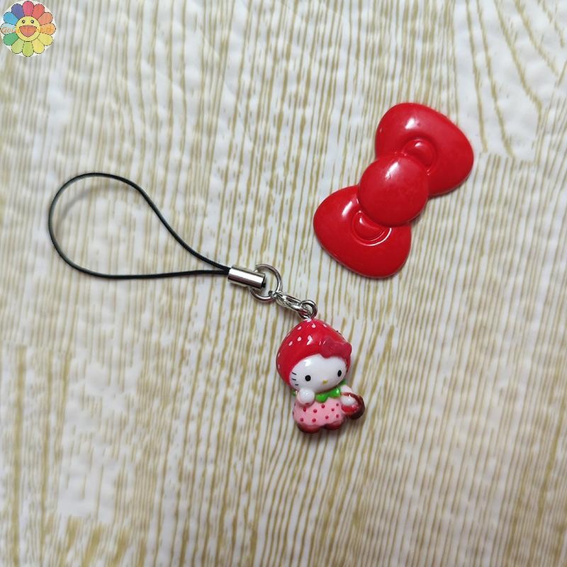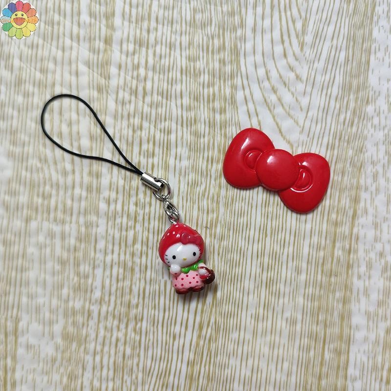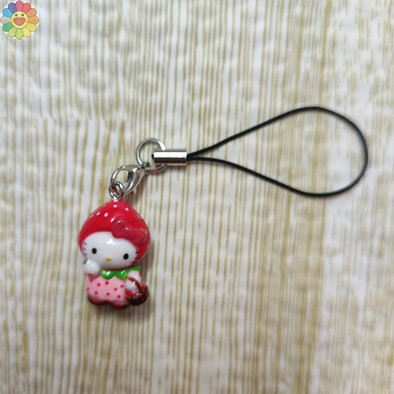 GOGO Kawaii สตรอเบอร์รี่ Hello Kitty โทรศัพท์มือถือโซ่การ์ตูนน่ารักแมวพวงกุญแจกระเป๋าเป้สะพายหลังจี้ตกแต่งเพื่อนของขวัญวันเกิด TH