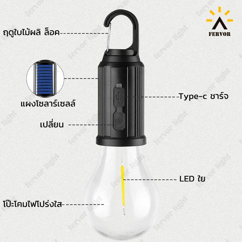 ไฟแคมป์ปิ้ง ไฟพลังงานแสงอาทิตย์ โคมไฟเต้นท์ ตะเกียง ทรงซาลาเปา แสง LED ปรับระดับได้ แข็งแรง ทนทาน