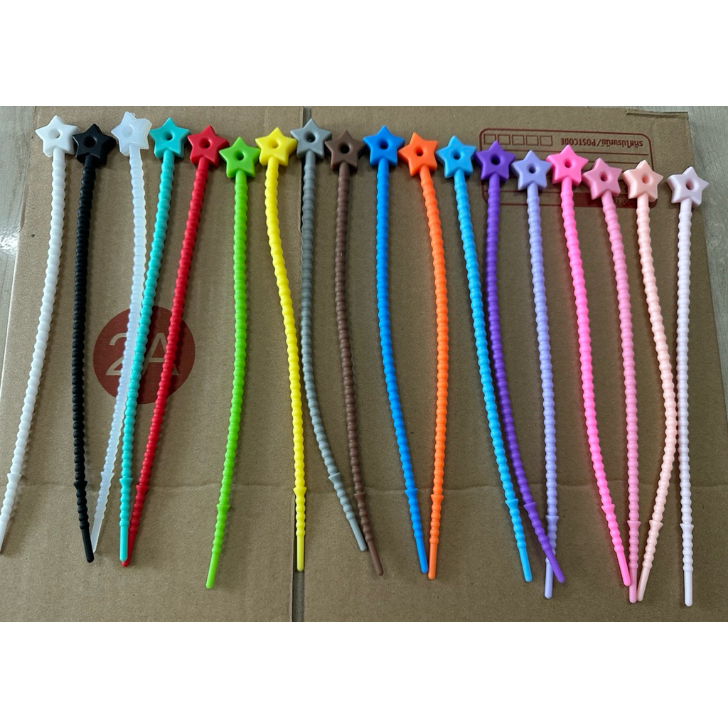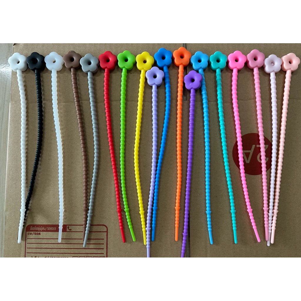 ตัวถนอมสายชาร์จ สายหูฟัง ซิลิโคน ลายดอกไม้ วงรี ดาว หัวใจ ยืดหยุ่น ยาว 21 เซน=100ชิ้น=230฿